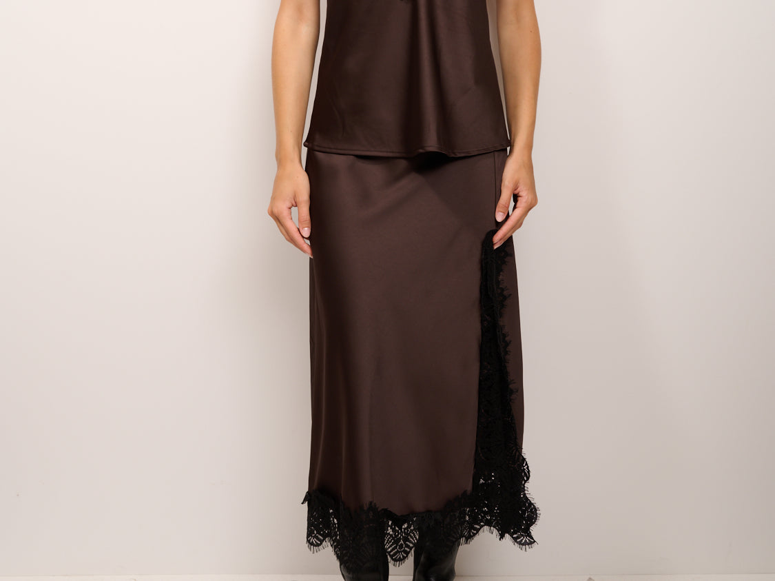 TENSIONE IN - TOP SATINE CON PIZZO - EBANO
