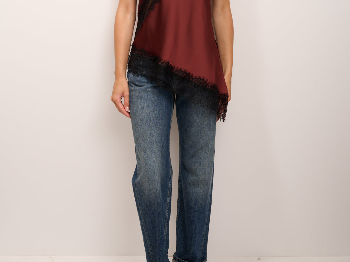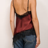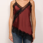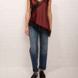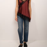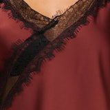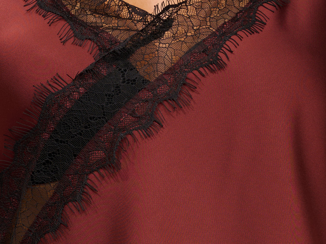 TENSIONE IN - TOP SATINE ASIMMETRICO PIZZO - BORDEAUX
