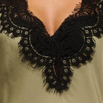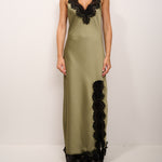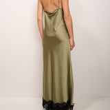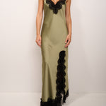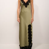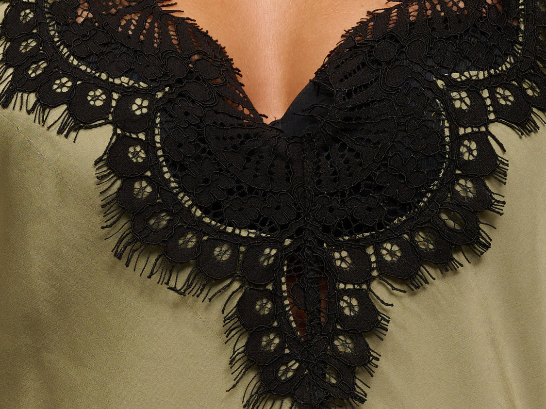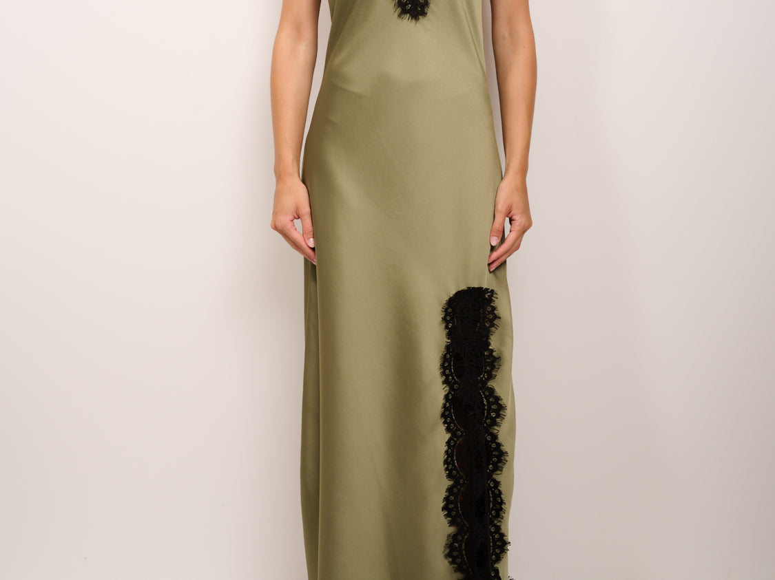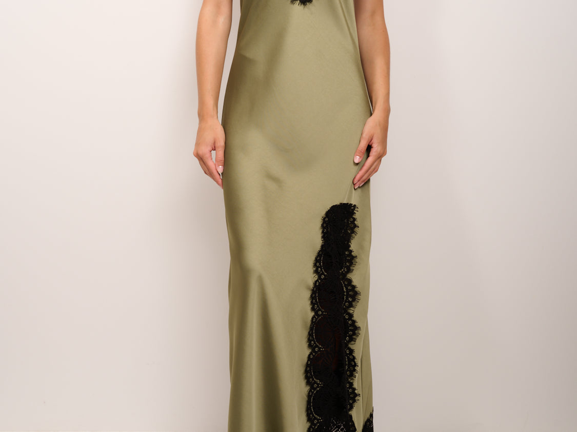 TENSIONE IN - ABITO SATINE BORDI PIZZO - ARMY GREEN