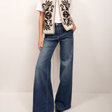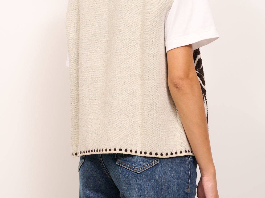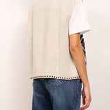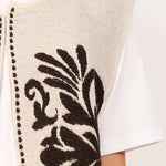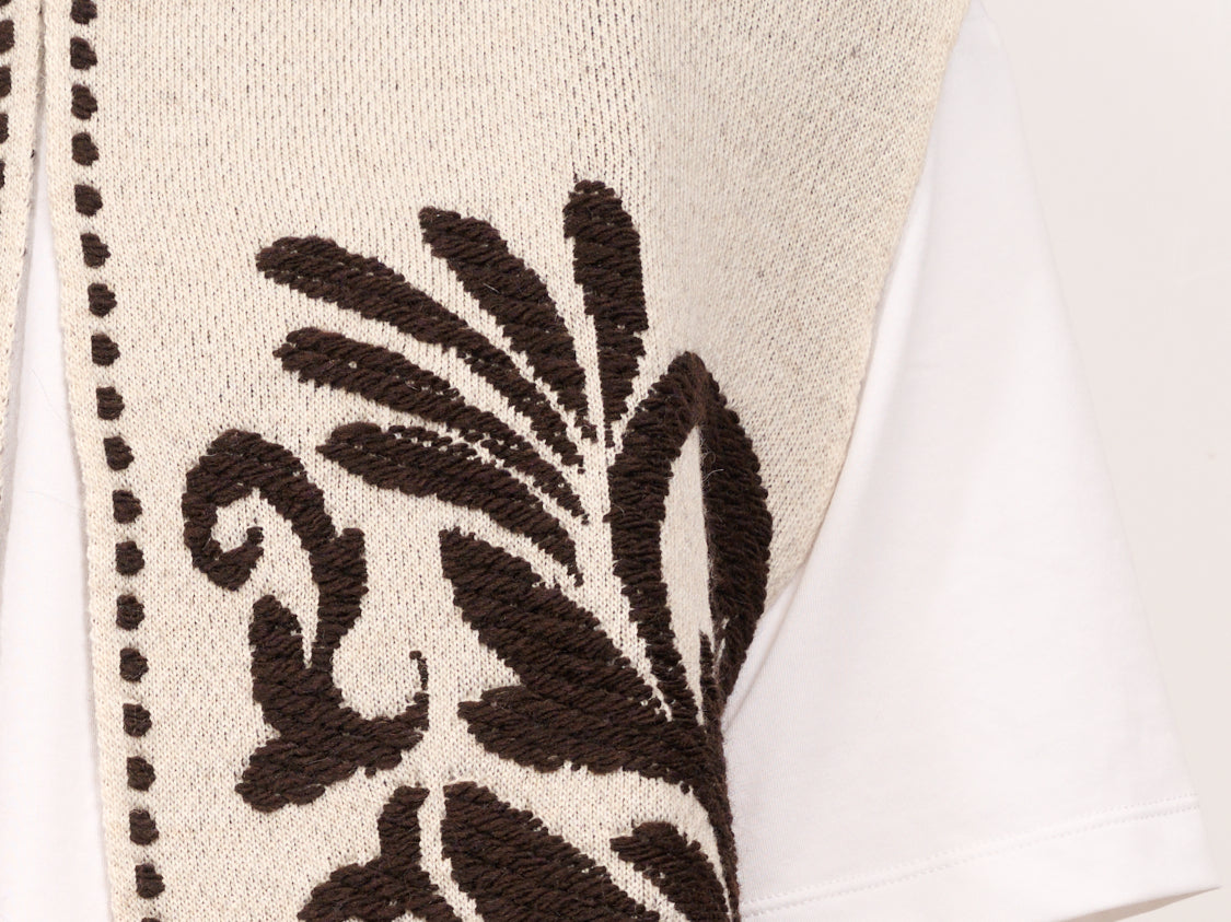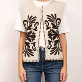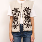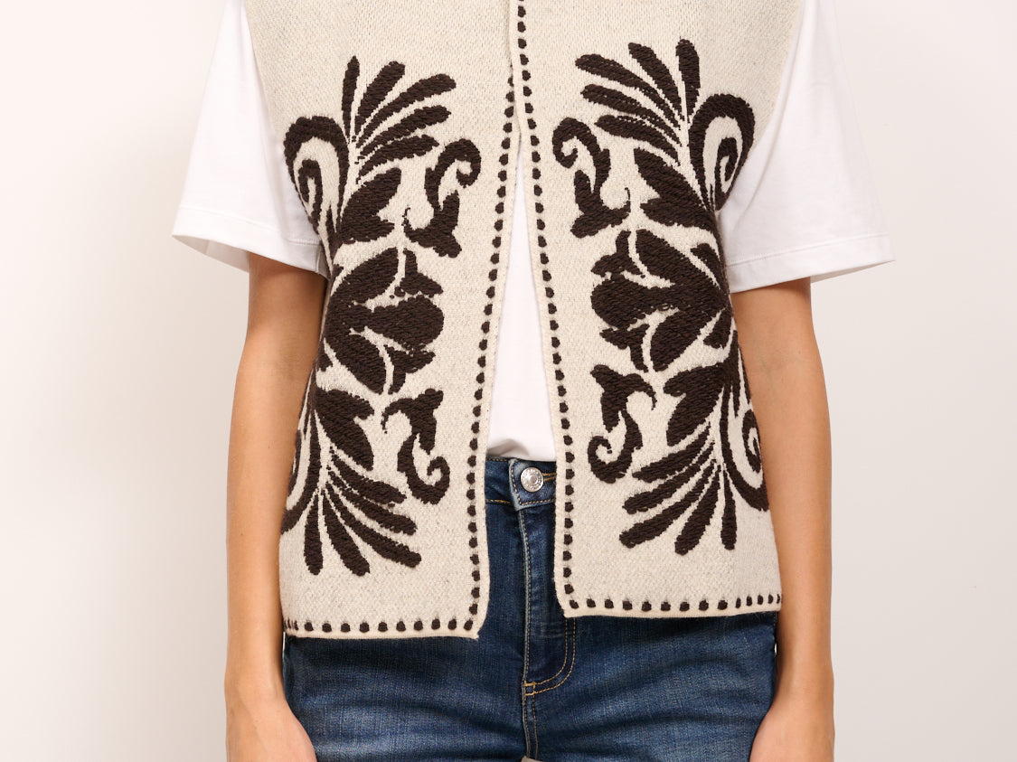TENSIONE IN - MAGLIA GILET RICAMATO - BIANCO/MORO