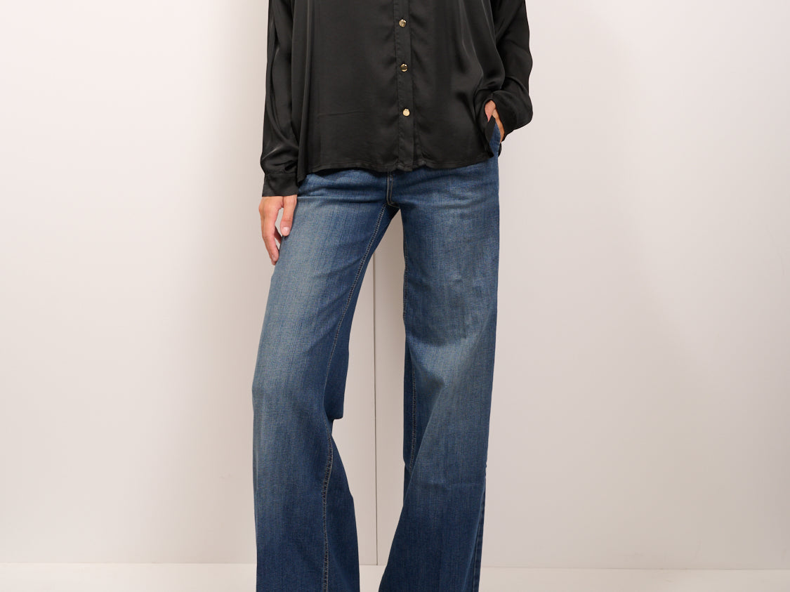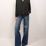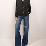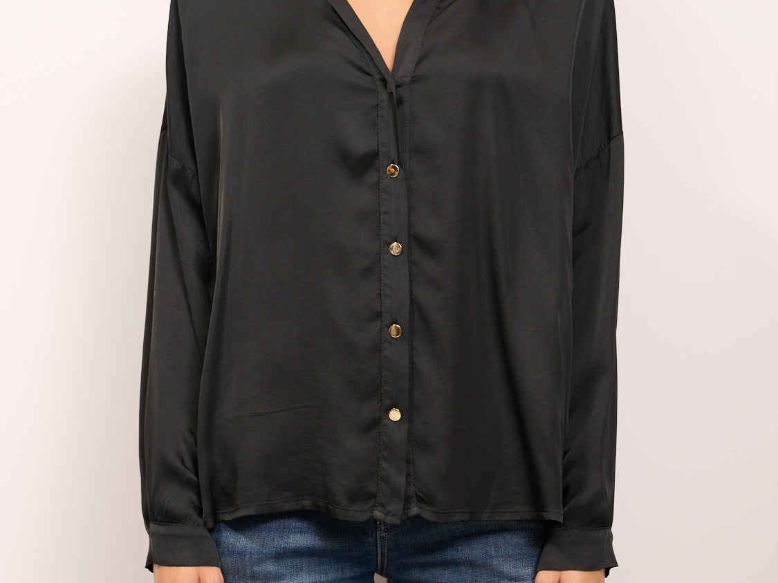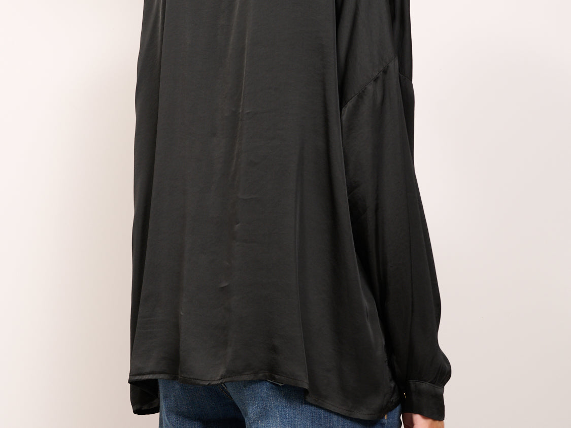 TENSIONE IN - CAMICIA OVER BOTTONI ORO SATIN - NERO
