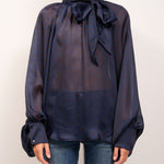 TENSIONE IN - CAMICIA FIOCCO POIS - BLU/MORO