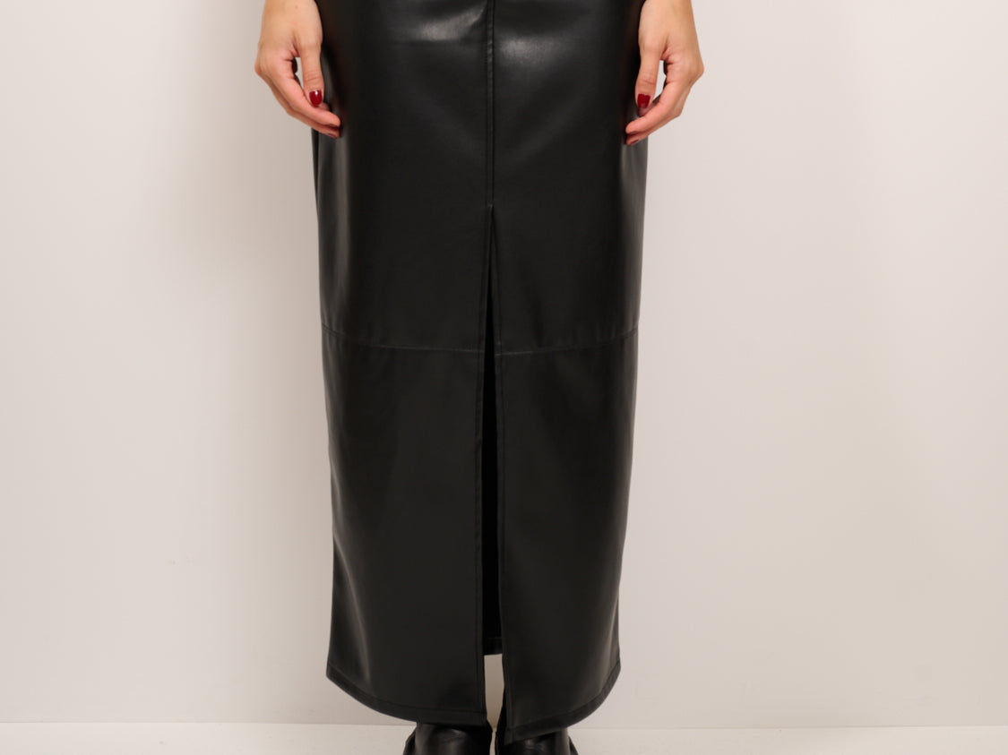 TENSIONE IN - GONNA LUNGA SPACCO ECOPELLE - NERO