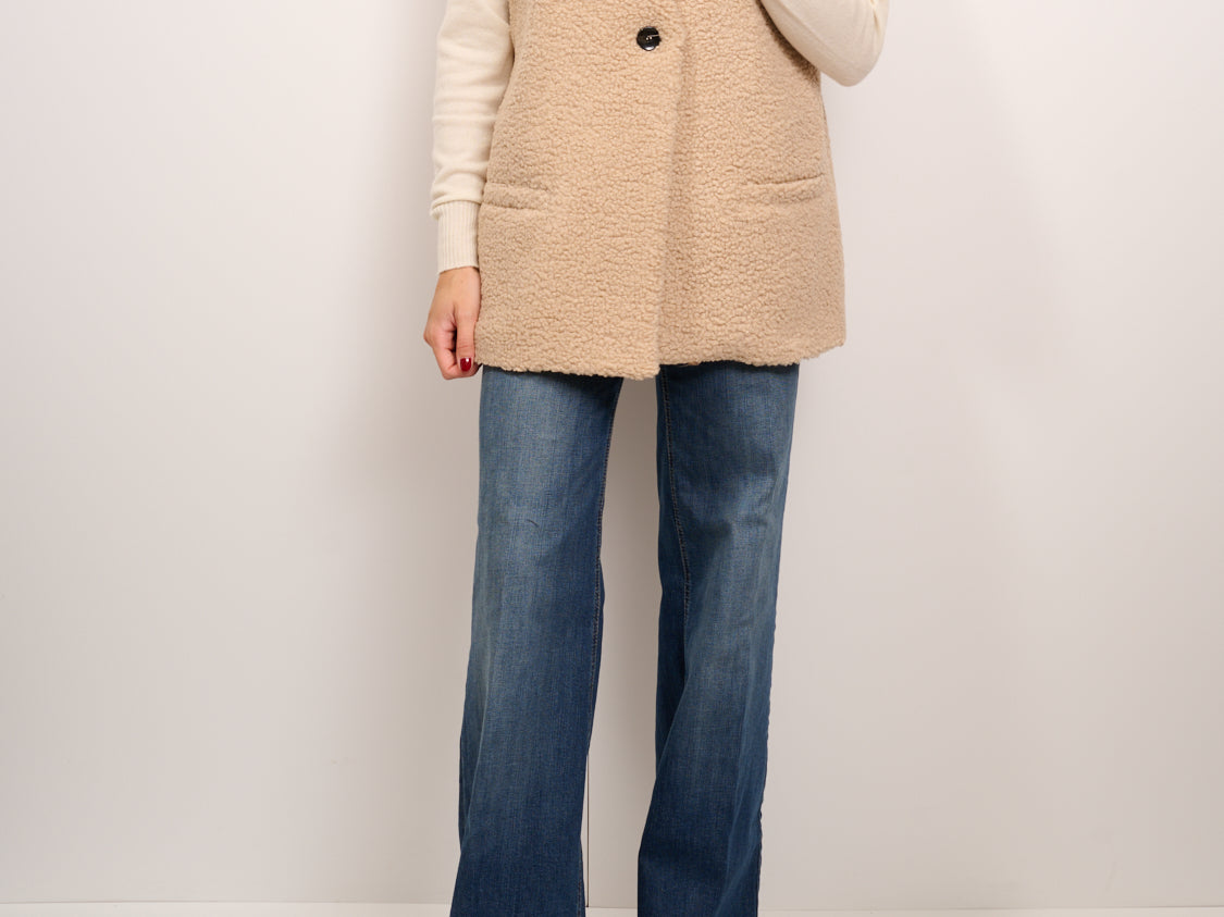 TENSIONE IN - GILET OVER TEDDY - CAMEL