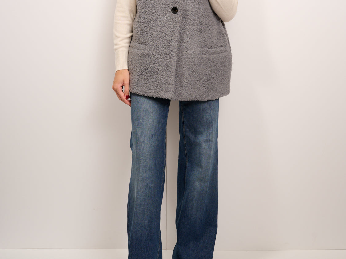 TENSIONE IN - GILET OVER TEDDY - GRIGIO