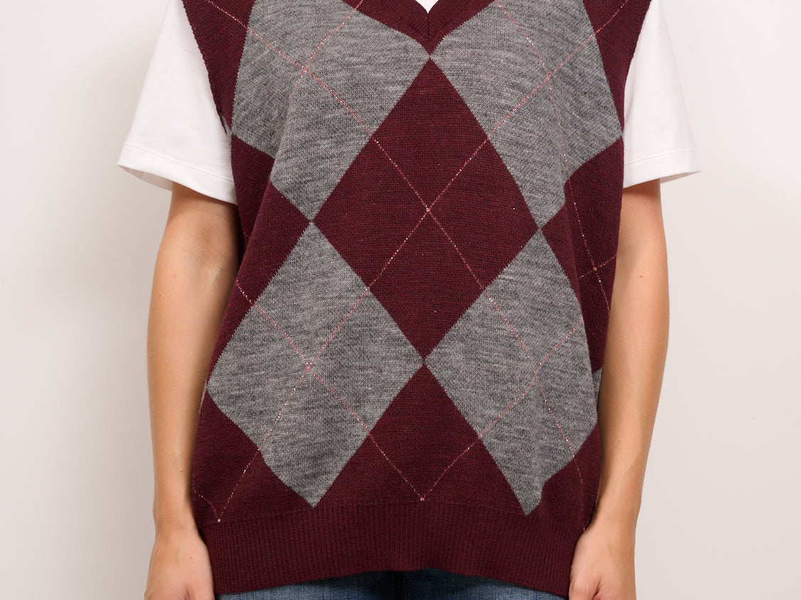IDENTITY - GILET ROMBI - BORDEAUX/GRIGIO