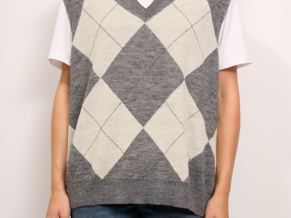 IDENTITY - GILET ROMBI - GRIGIO/BURRO