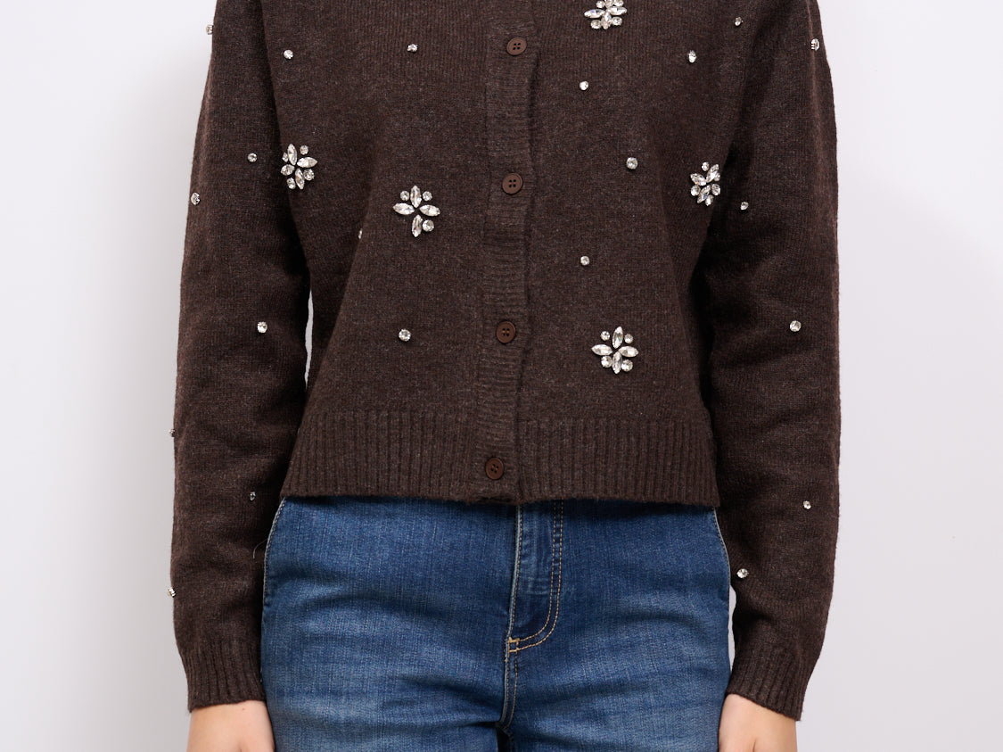 AN'GE - MAGLIA BOTTONI STRASS - MORO