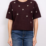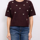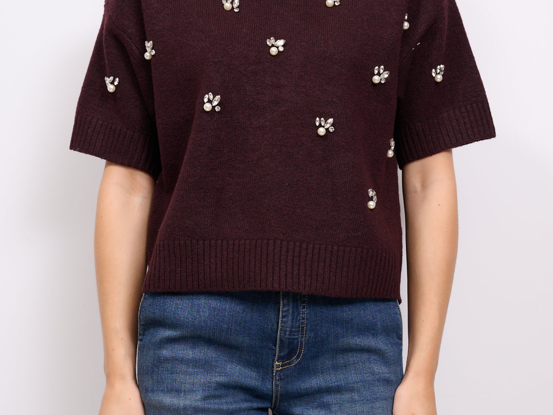 AN'GE - MAGLIA MEZZA MANICA STRASS - VINO