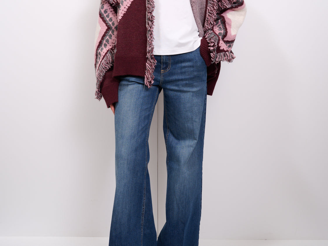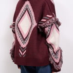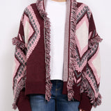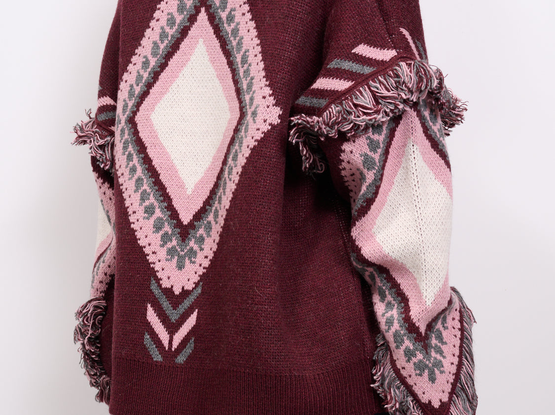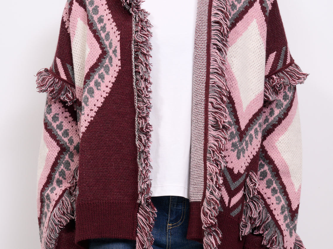 TENSIONE IN - CARDIGAN ROMBIN FRANGE - BURGUNDI