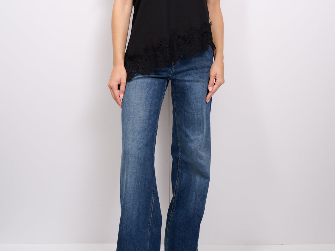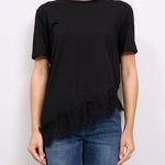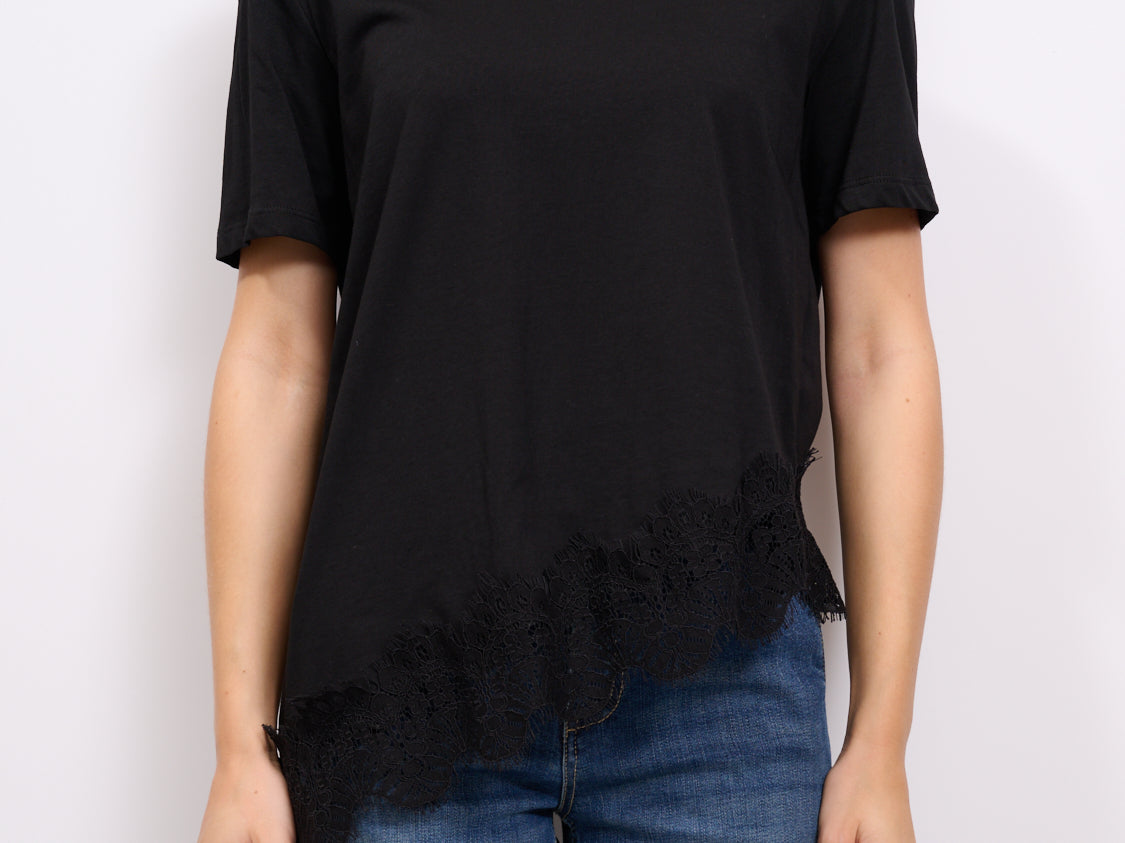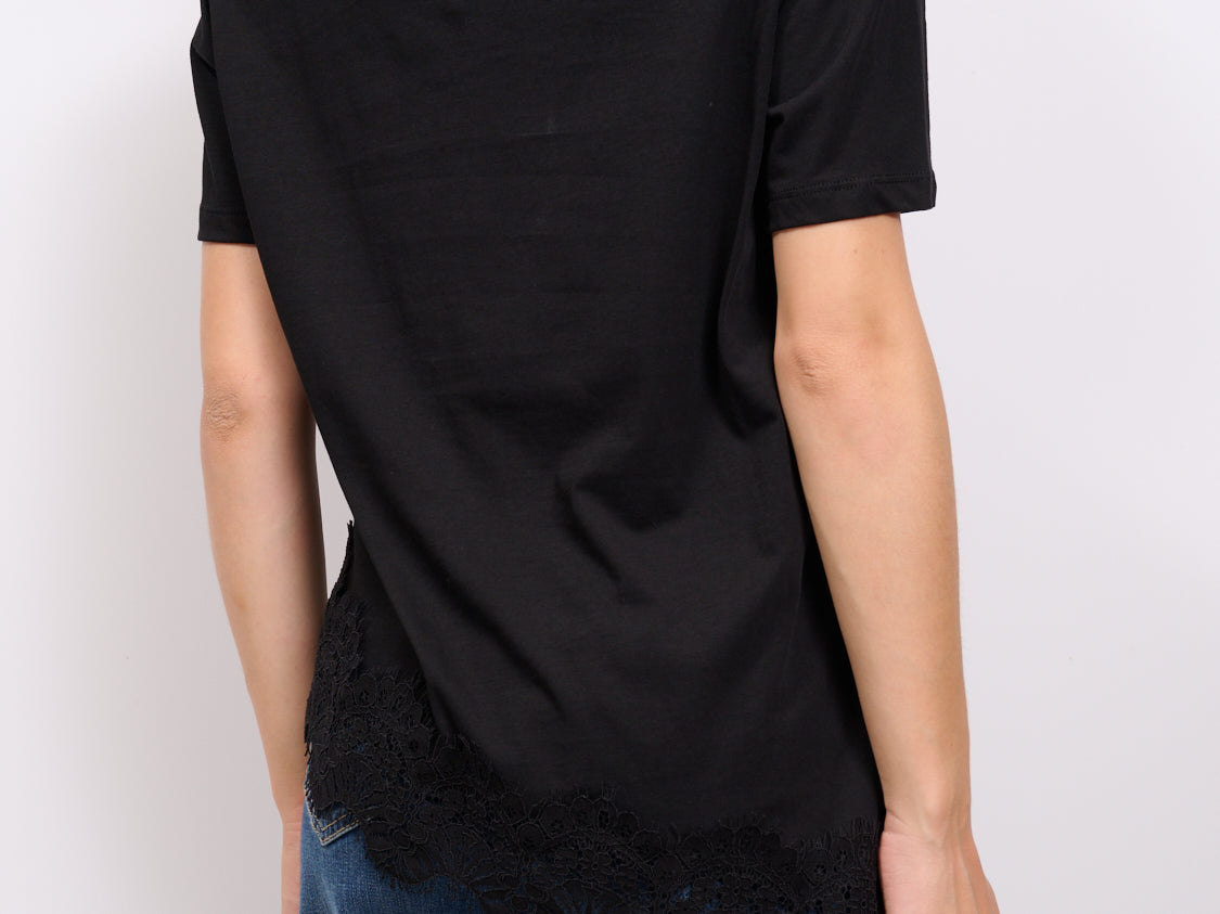 TENSIONE IN - T-SHIRT ASIMMETRICA PIZZO - NERO/NERO