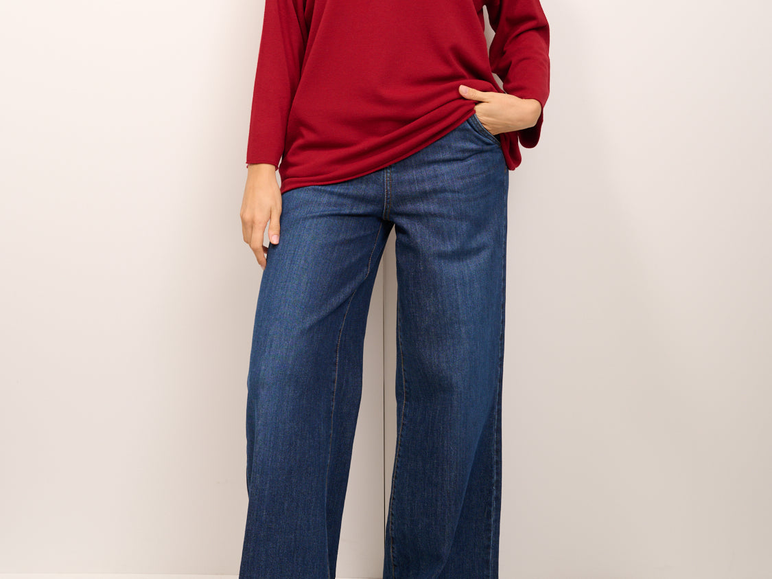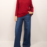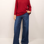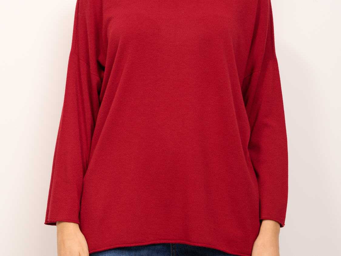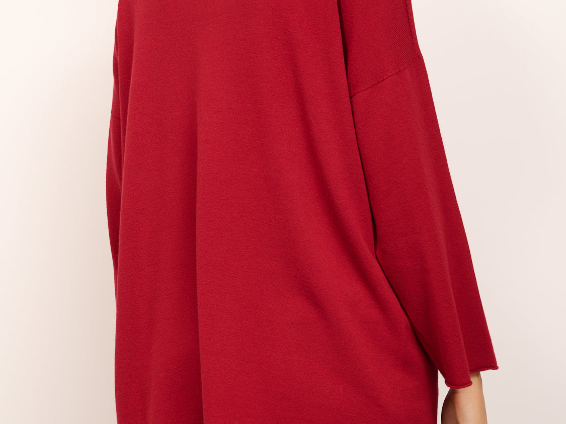 KONTATTO - MAGLIA GIROCOLLO OVER ROTOLINO - CILIEGIA