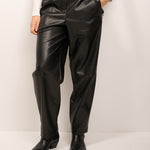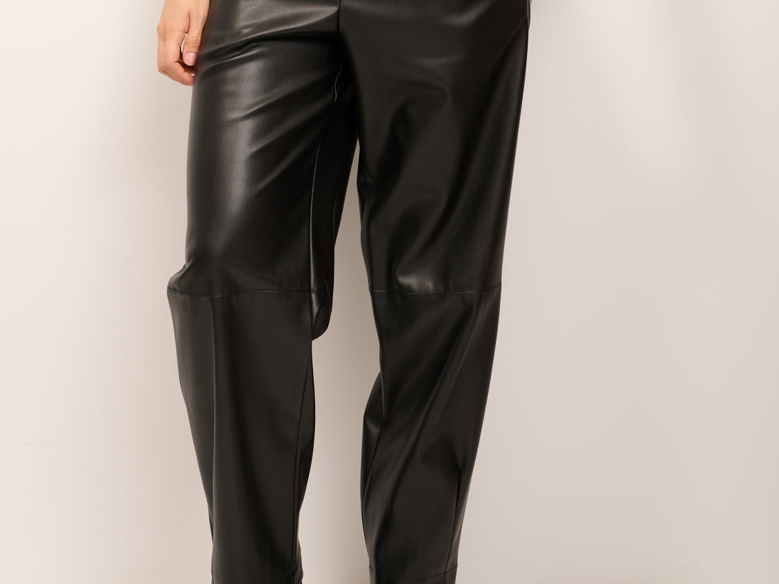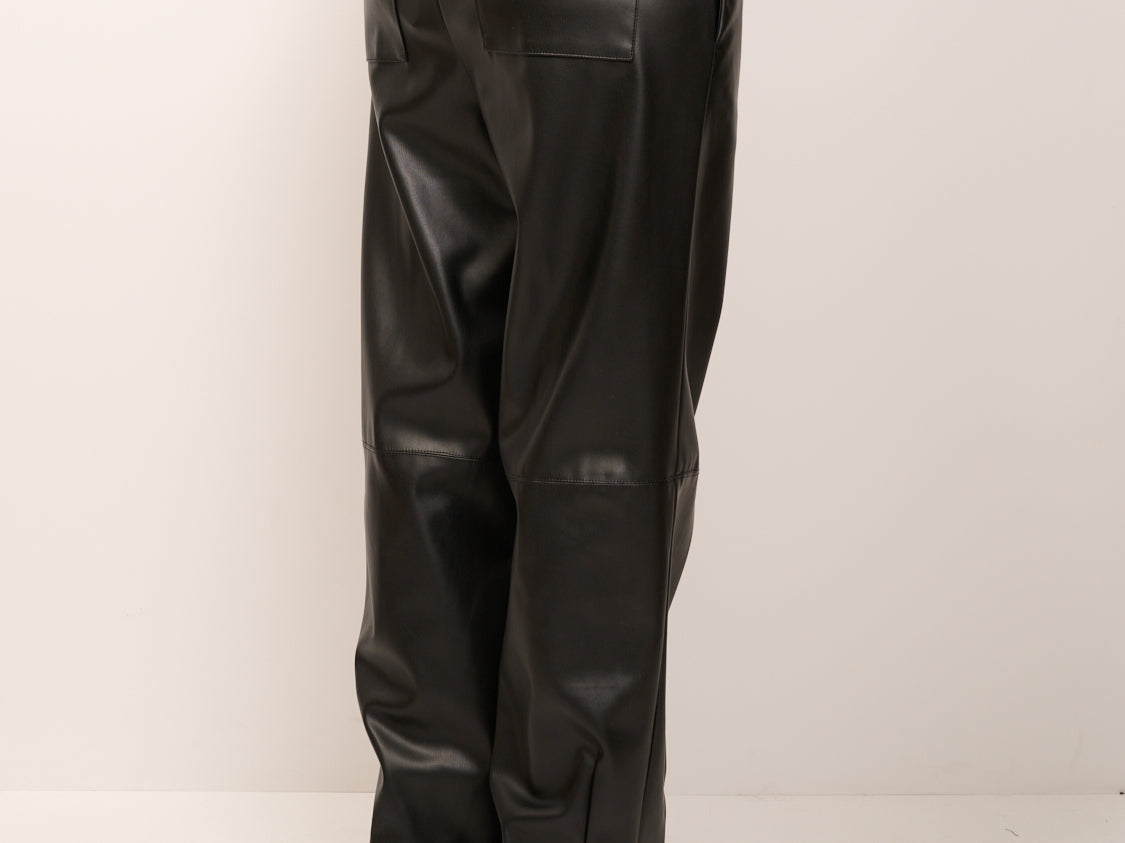 VICOLO - PANTALONE ELASTICO ECOPELLE - NERO
