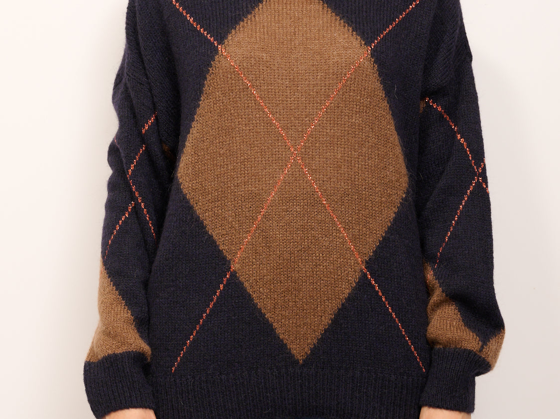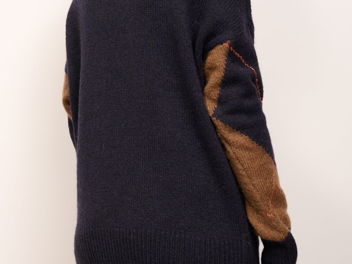 IDENTITY - MAGLIA ROMBO FILO LUREX - BLU/MORO