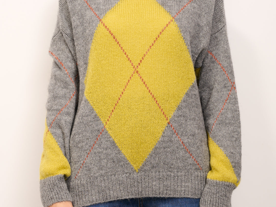 IDENTITY - MAGLIA ROMBO FILO LUREX - GRIGIO/LIME