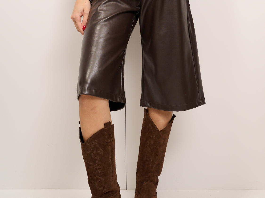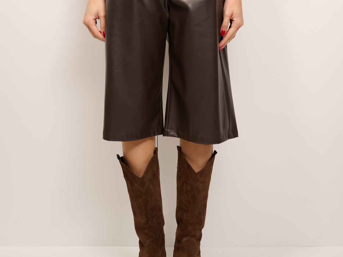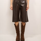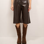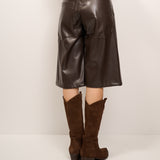 TENSIONE IN - PANTALONE BERMUDA ECOPELLE - MORO