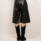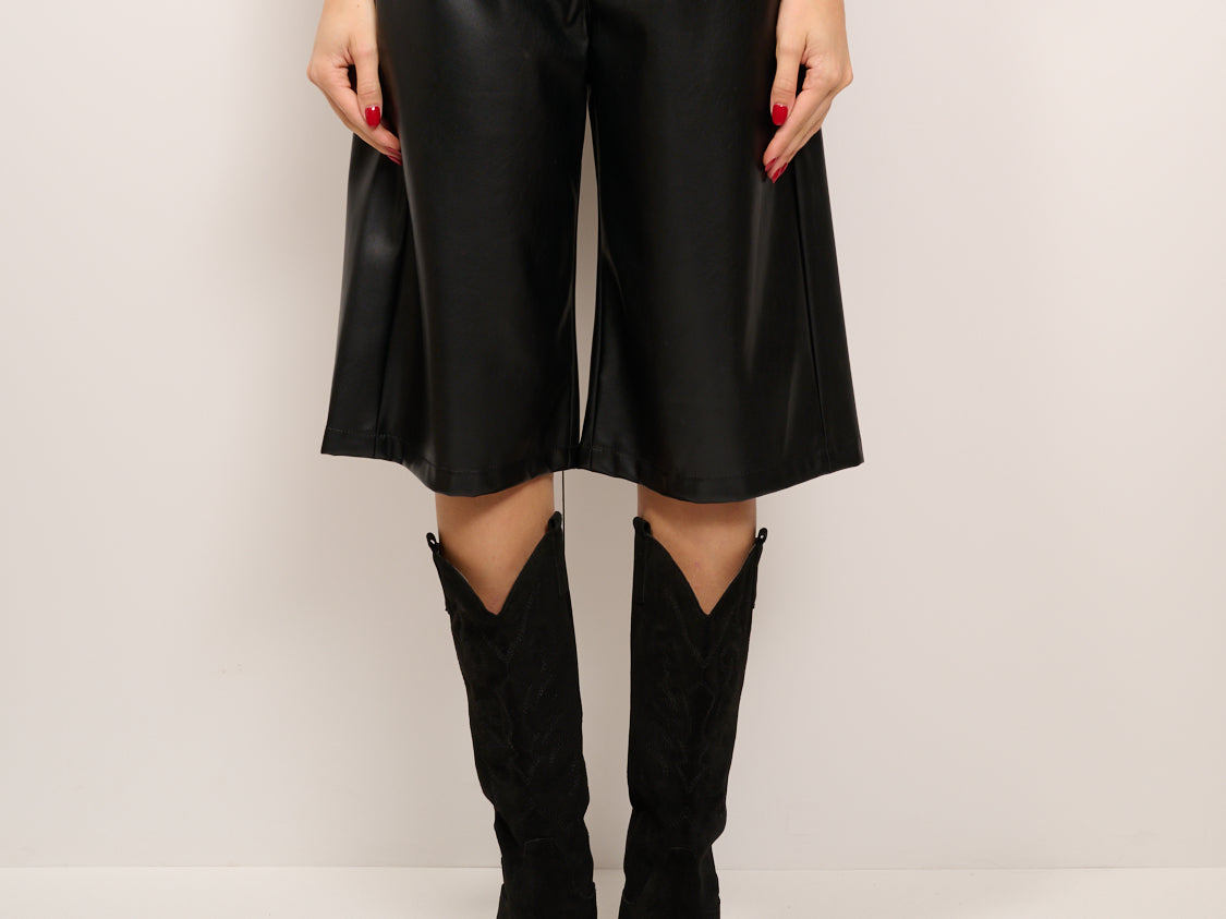 TENSIONE IN - PANTALONE BERMUDA ECOPELLE - NERO