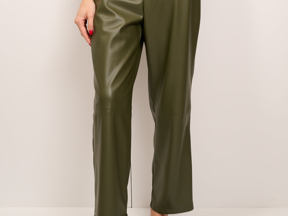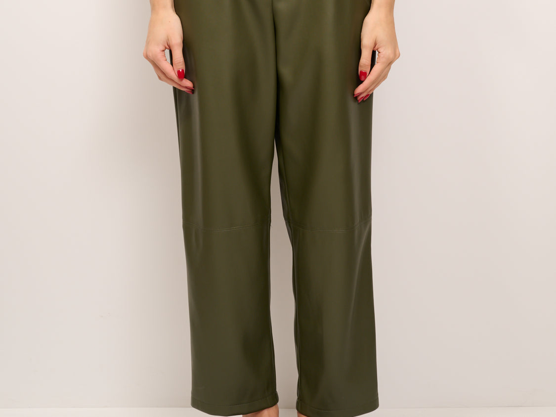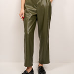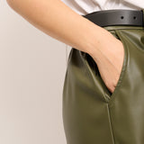 TENSIONE IN - PANTALONE BOYFIT ECOPELLE - MILITARE