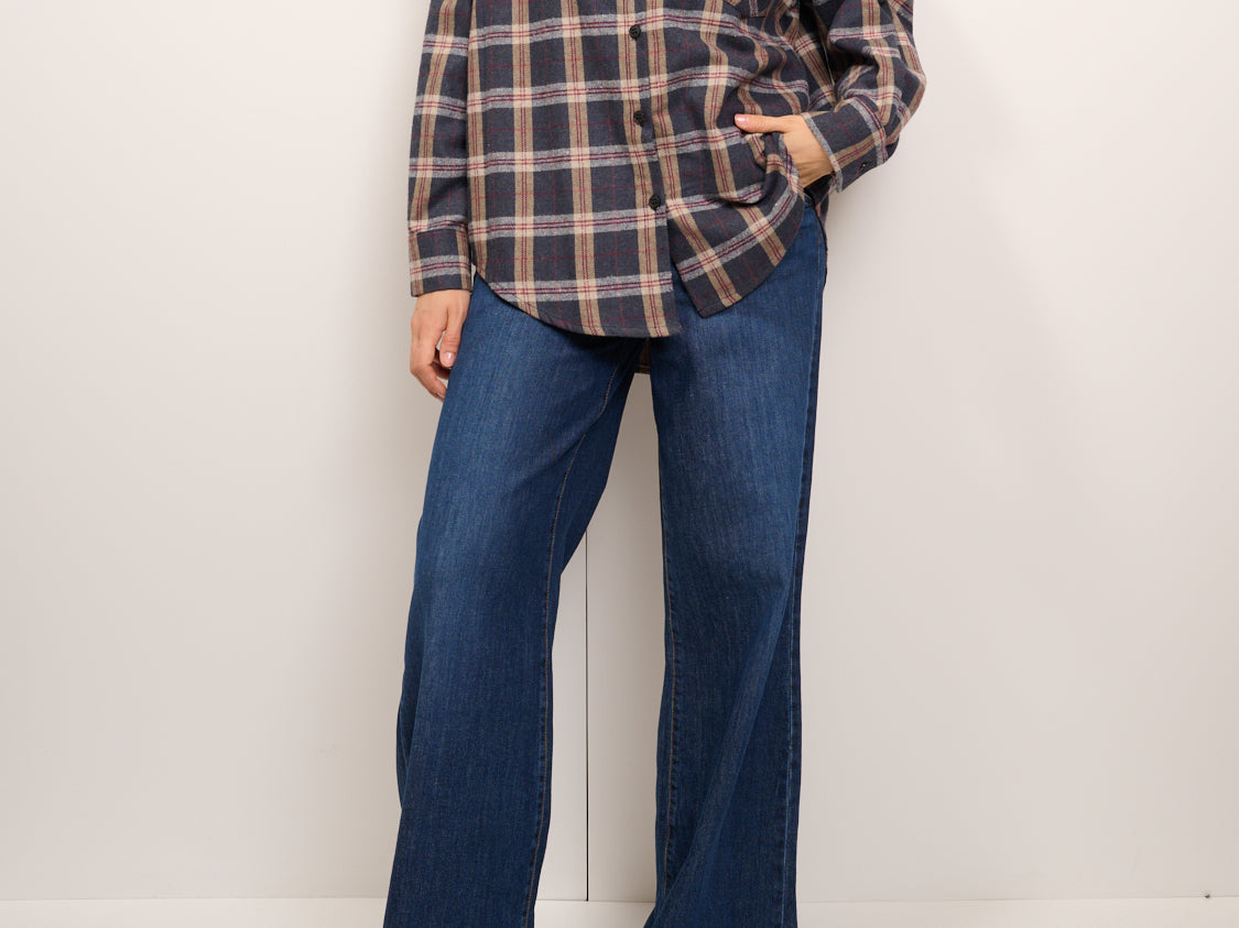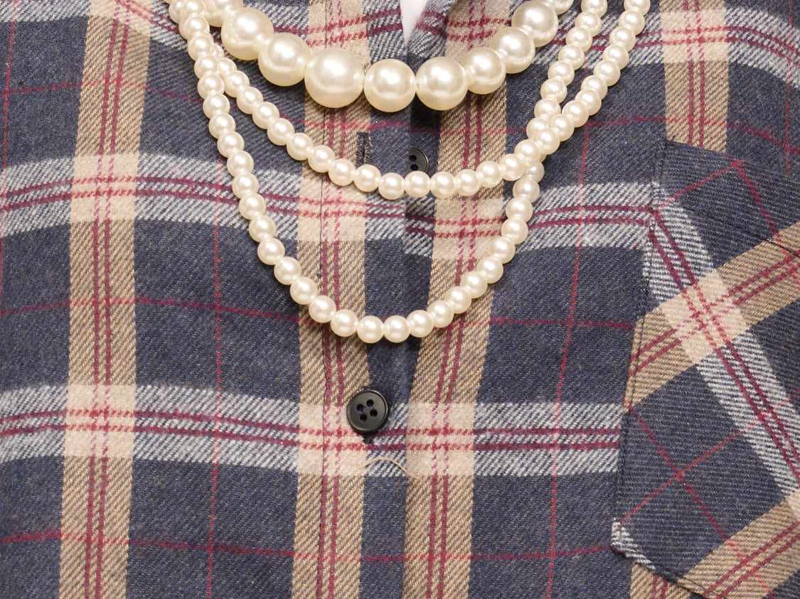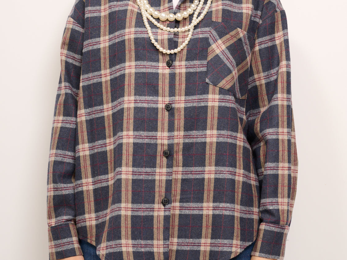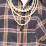 TENSIONE IN - CAMICIA QUADRI CON PERLE - GRIGIO