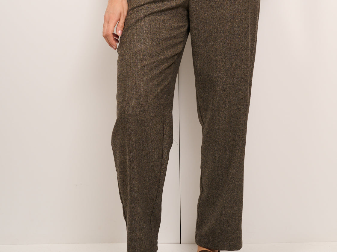TENSIONE IN- PANTALONE BOYFIT SPINATO - TABACCO