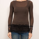 TENSIONE IN - MAGLIA MANICA LUNGA PIZZO - MOKA