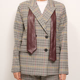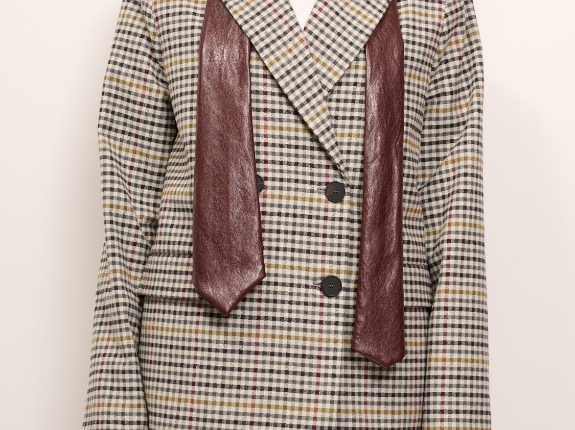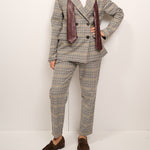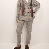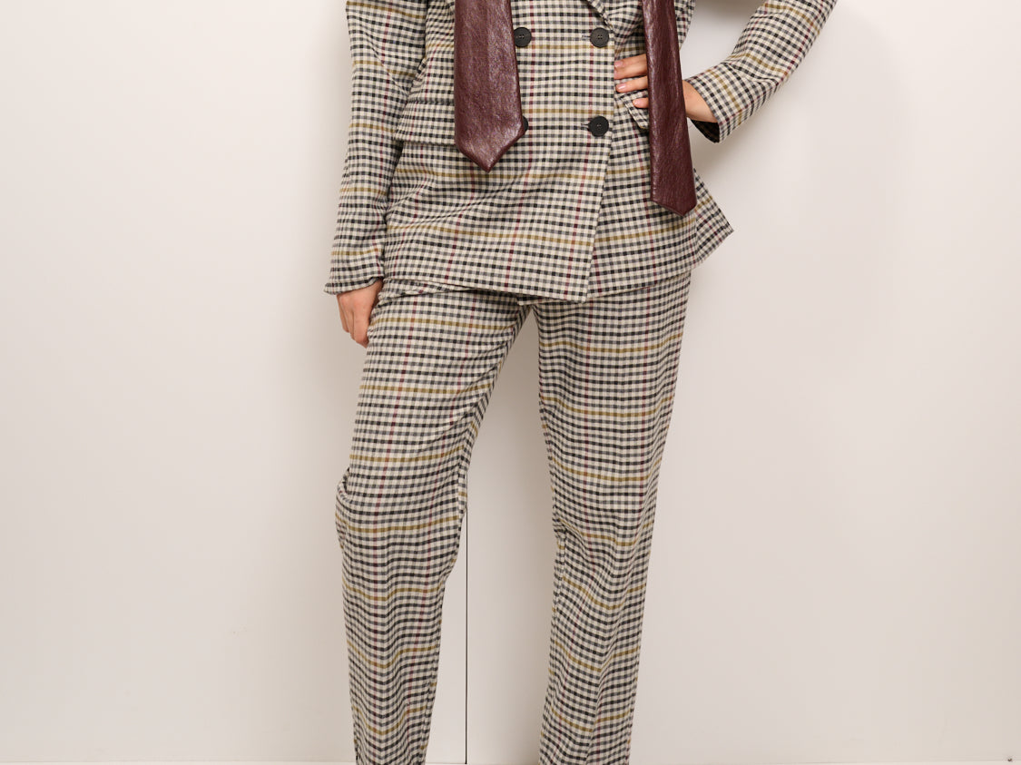 TENSIONE IN - GIACCA QUADRI DOPPIO PETTO CRAVATTA - GRIGIO/NERO/SENAPE