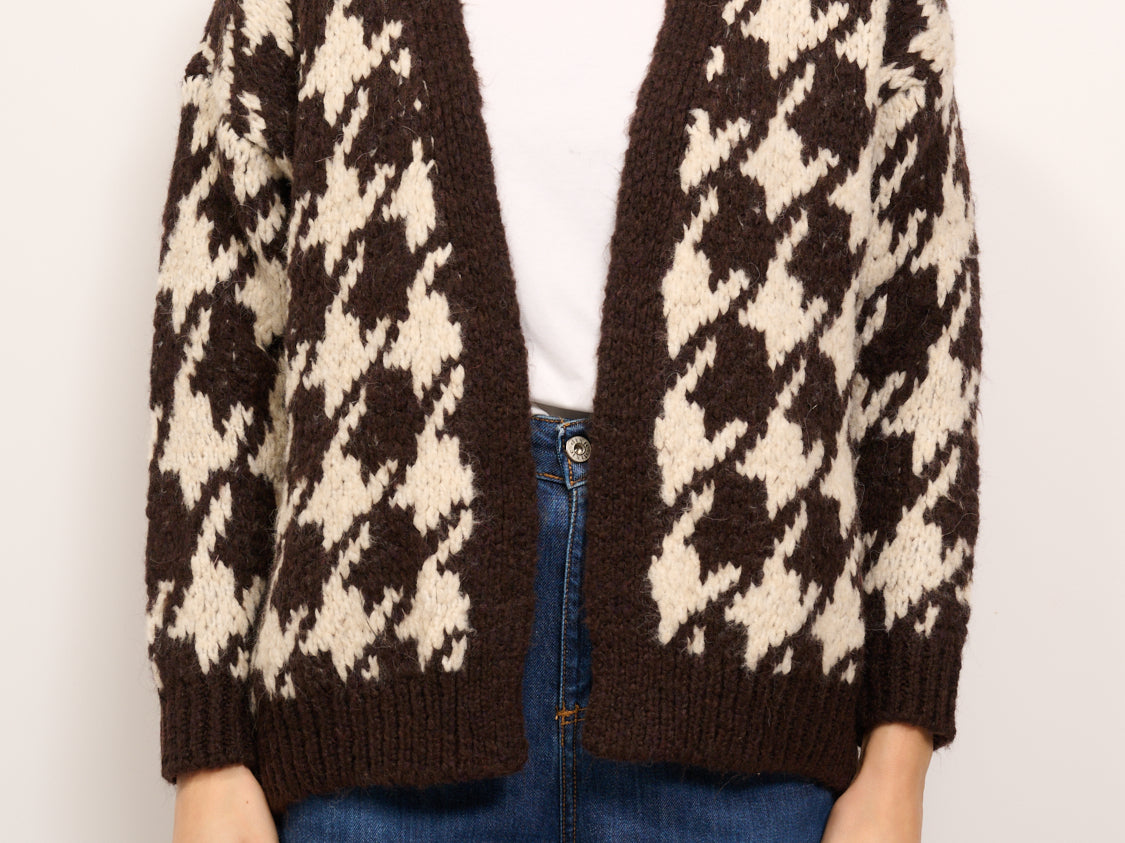 HAVE ONE - MAGLIA CARDIGAN PIED DE PULL - MORO/CAFFE'