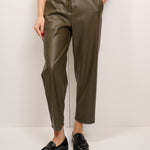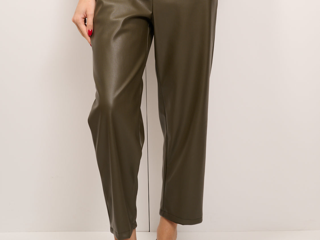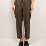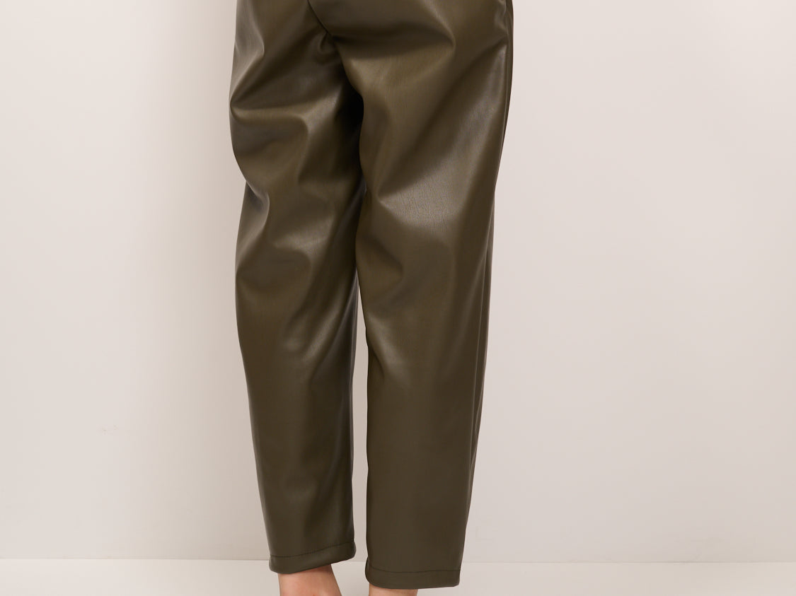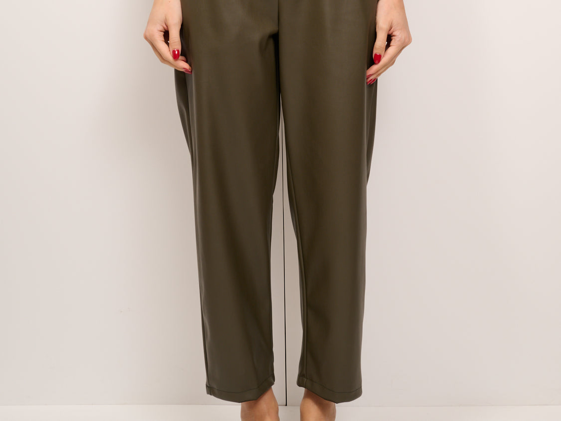 VICOLO - PANTALONE ECOPELLE ELASTICO DIETRO - MILITARE