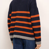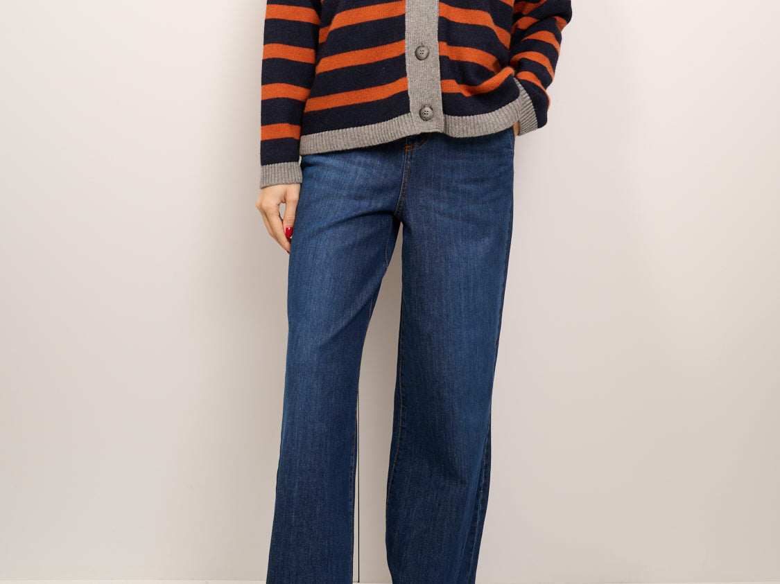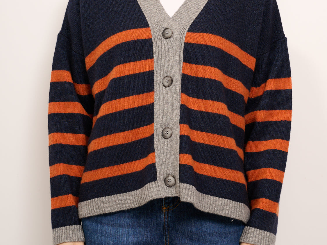 IDENTITY - MAGLIA V BOTTONI - BLU/RUGGINE
