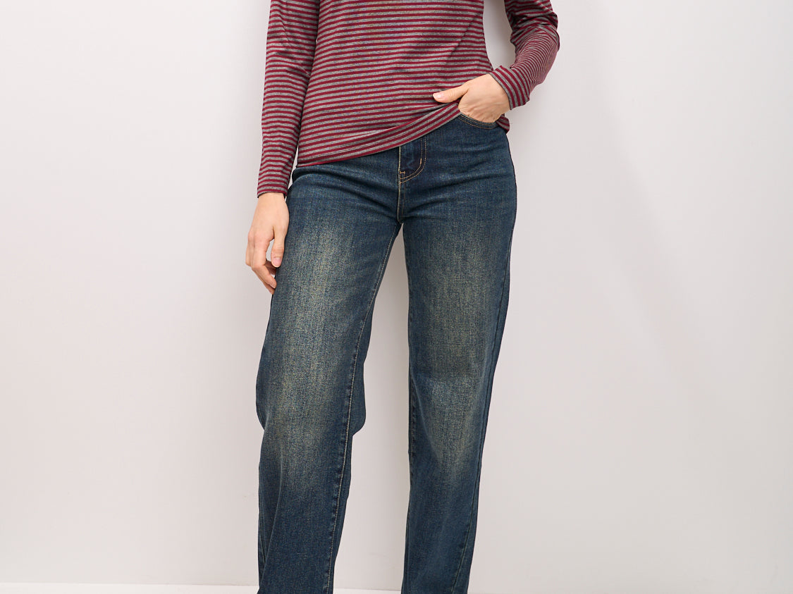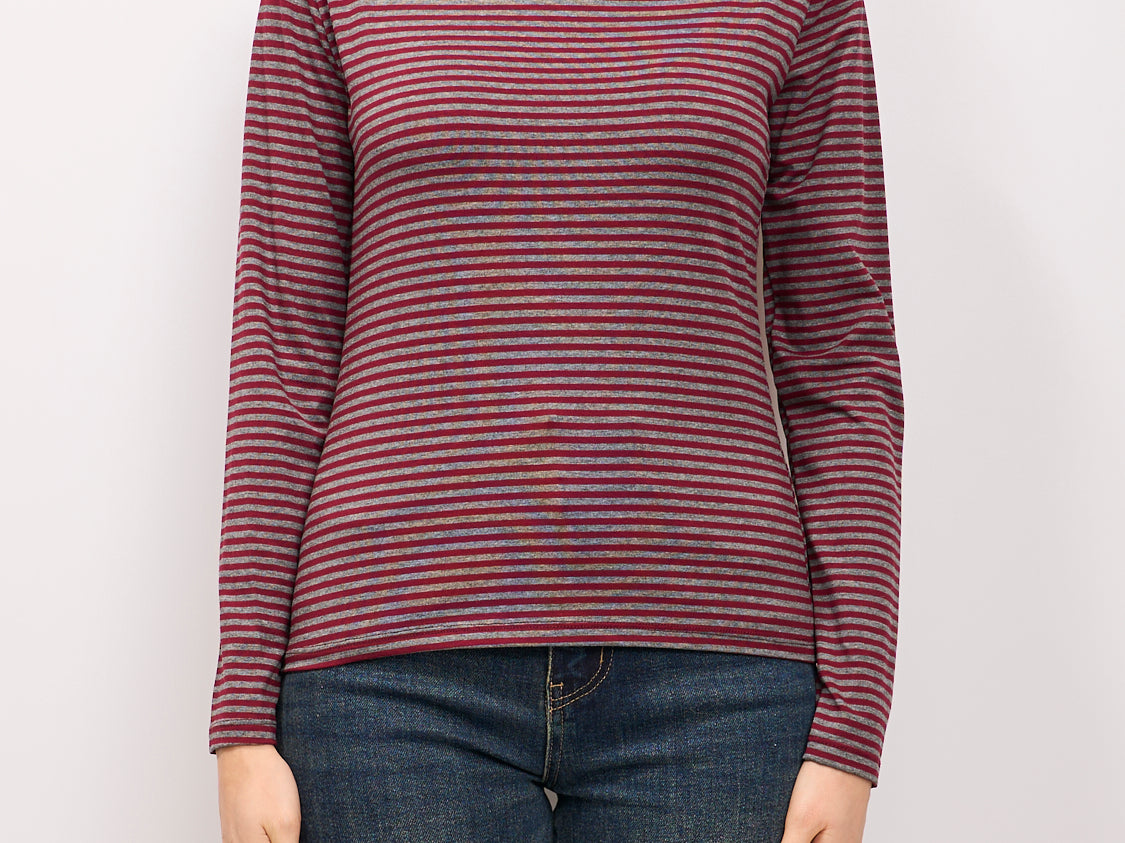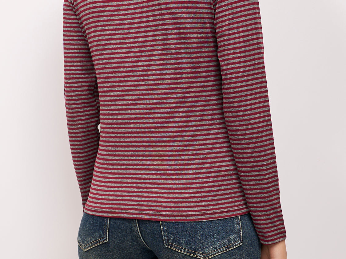 IDENTITY - MAGLIA SCOLLO BARCA RIGATA - BORDEAUX/GRIGIO