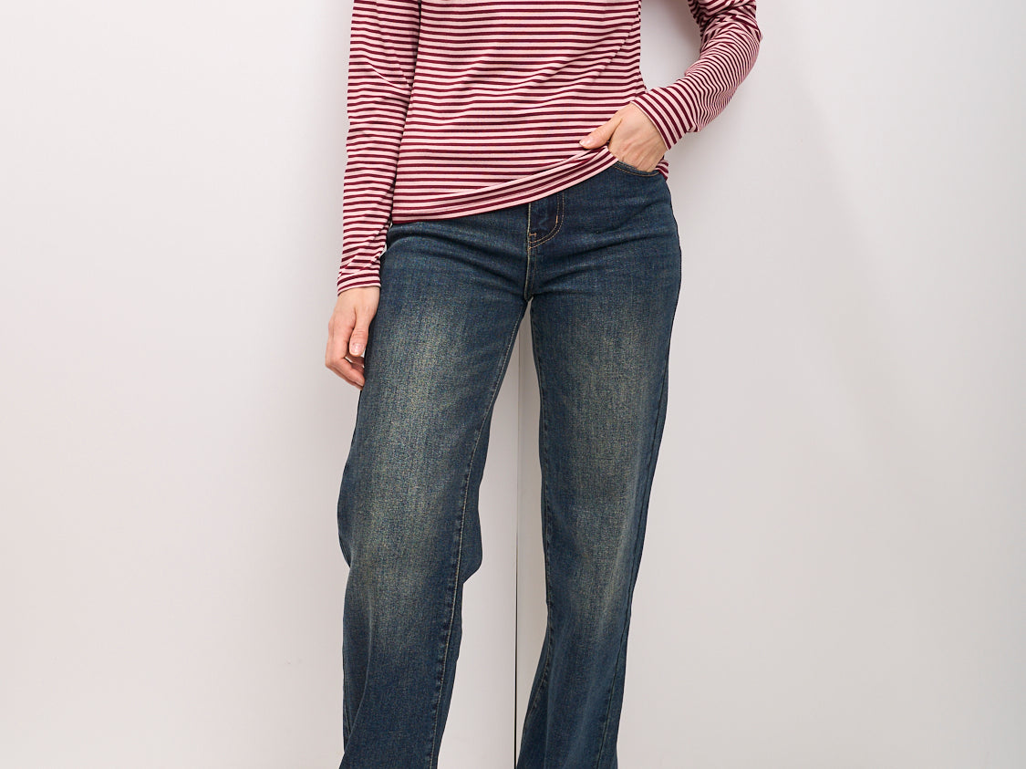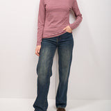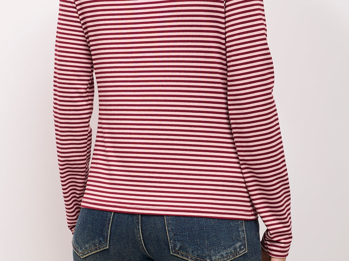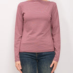 IDENTITY - MAGLIA SCOLLO BARCA RIGATA - BORDEAUX/ROSA