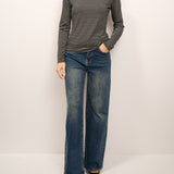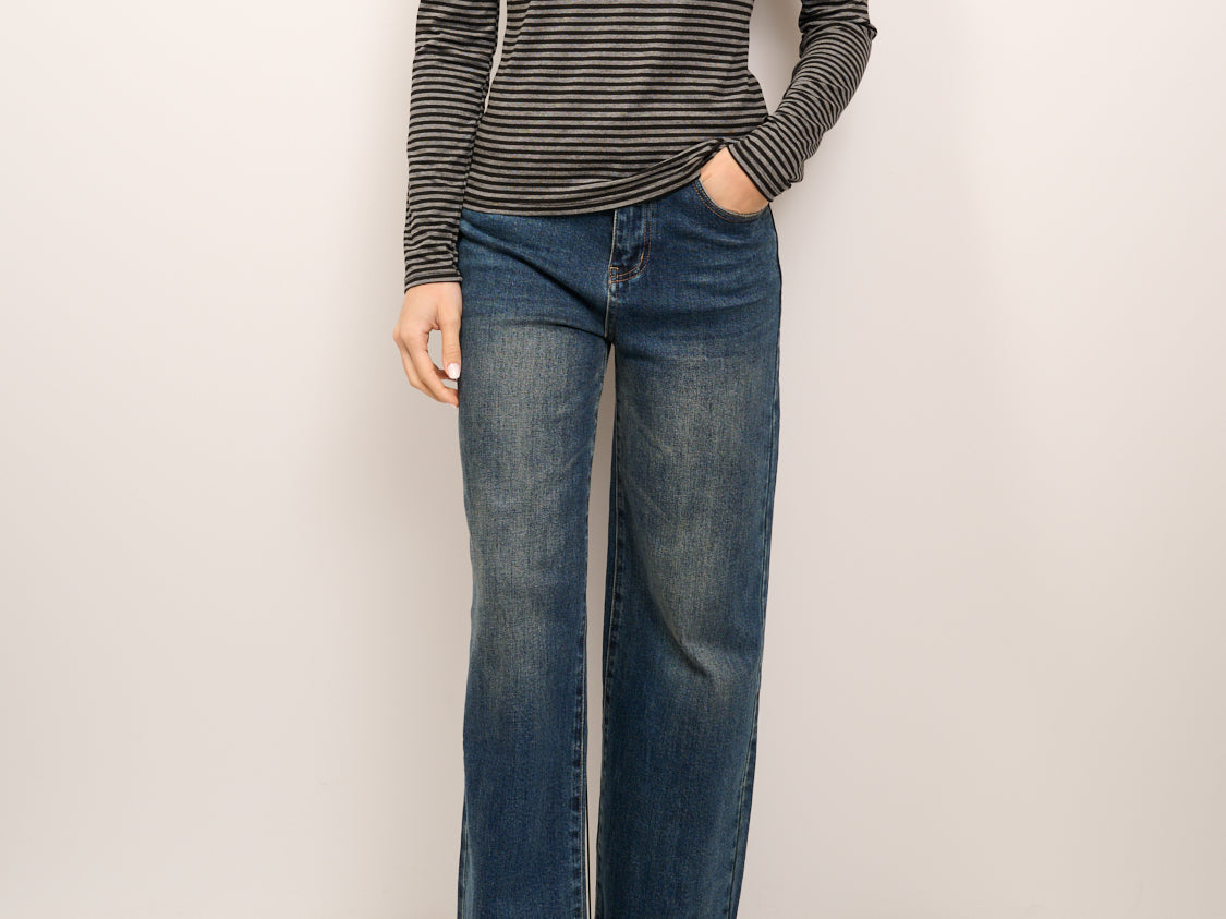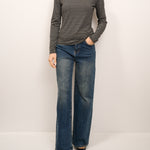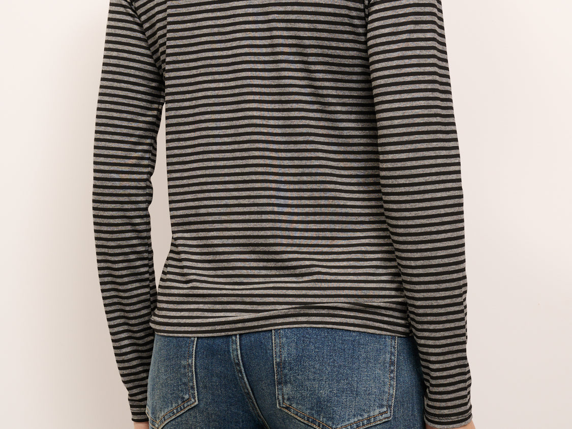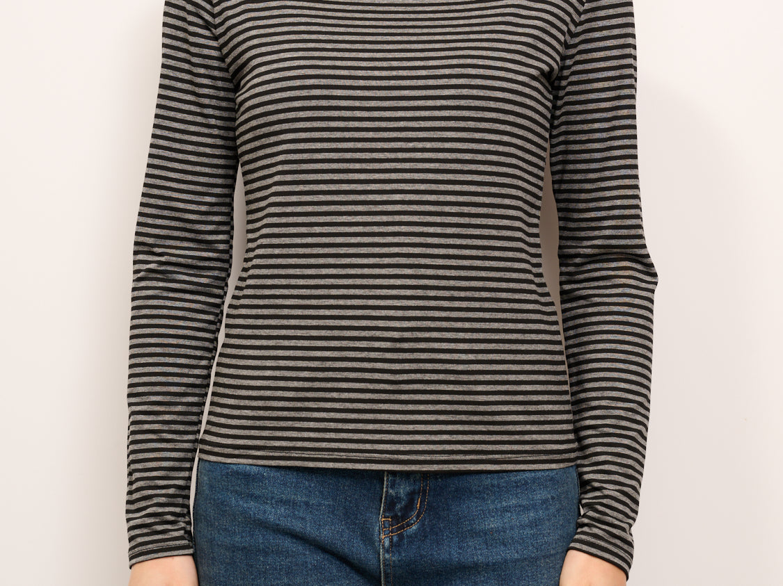 IDENTITY - MAGLIA SCOLLO BARCA RIGATA - GRIGIO/NERO