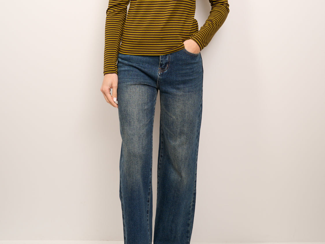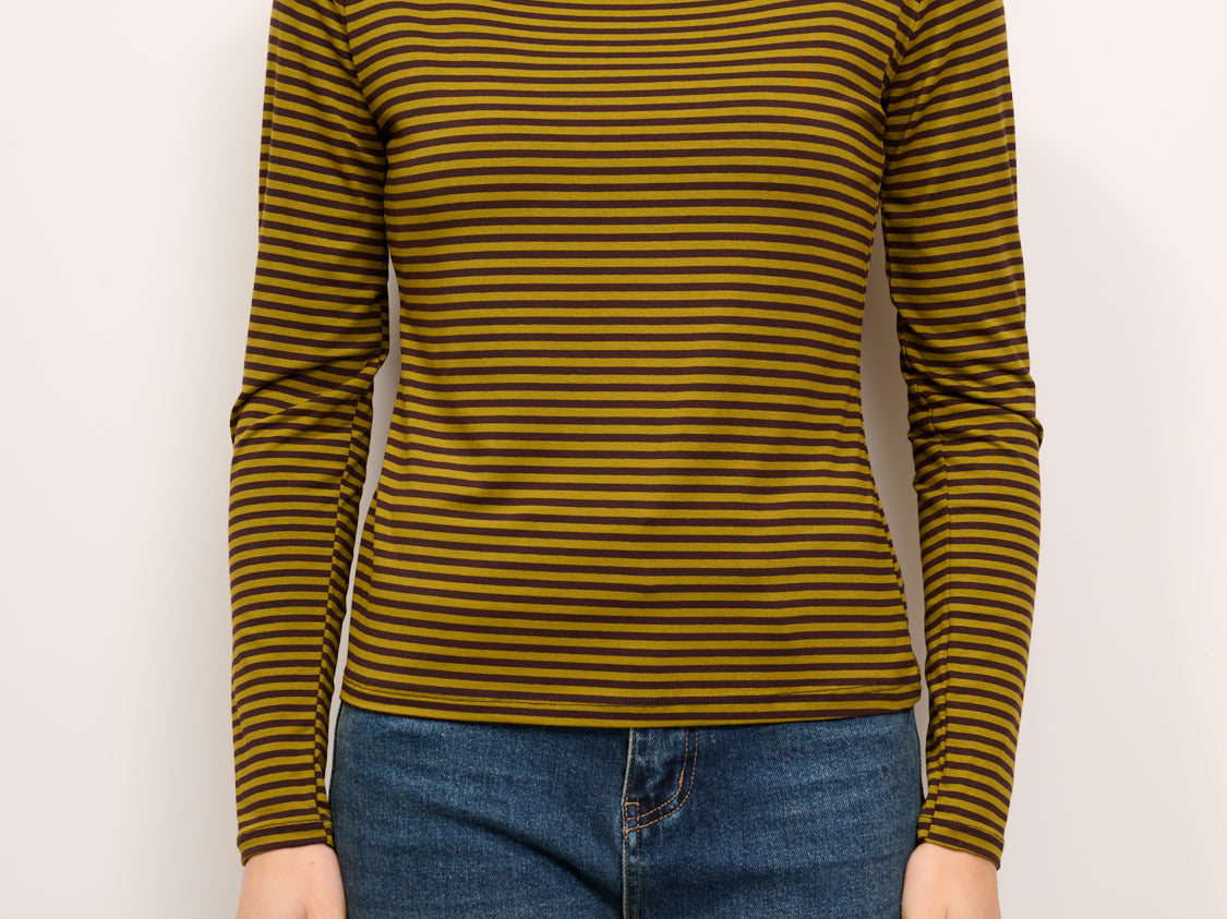 IDENTITY - MAGLIA SCOLLO BARCA RIGATA - MORO/OLIO