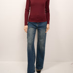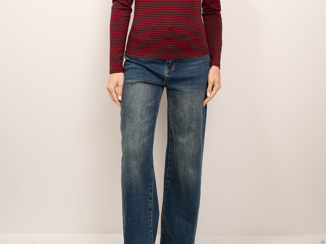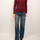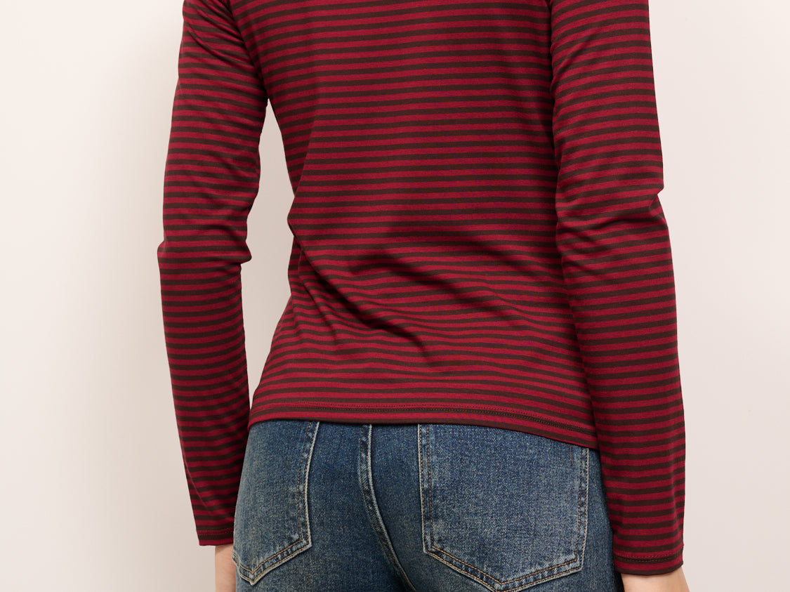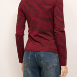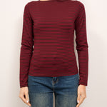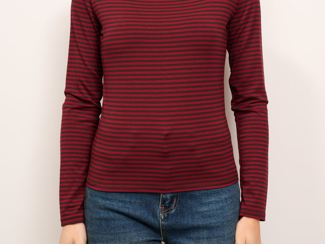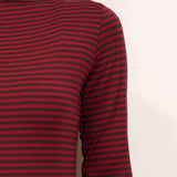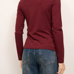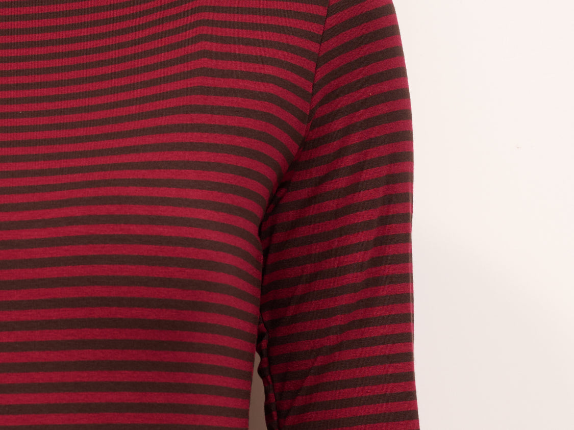 IDENTITY - MAGLIA SCOLLO BARCA RIGATA - MORO/ROSSO