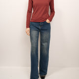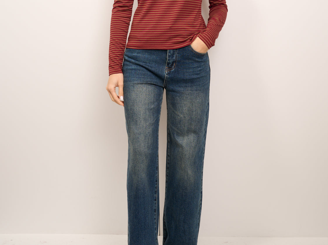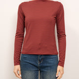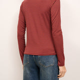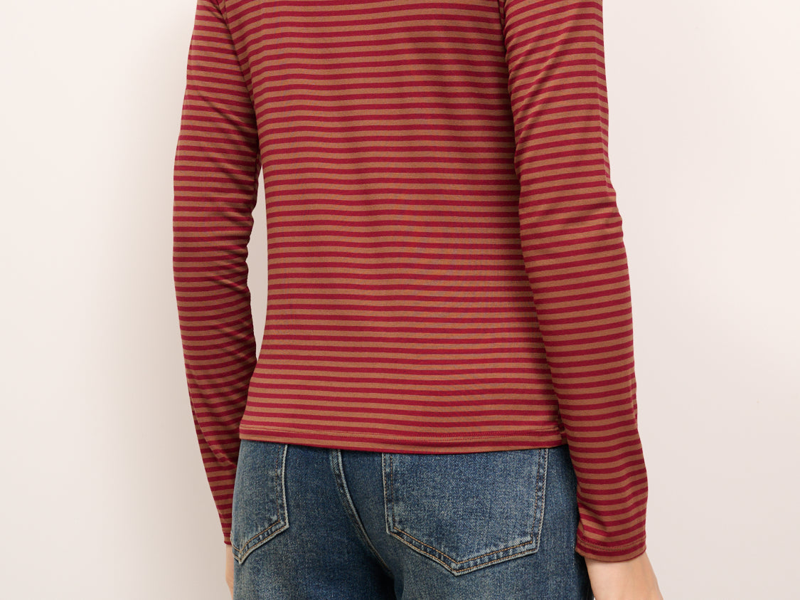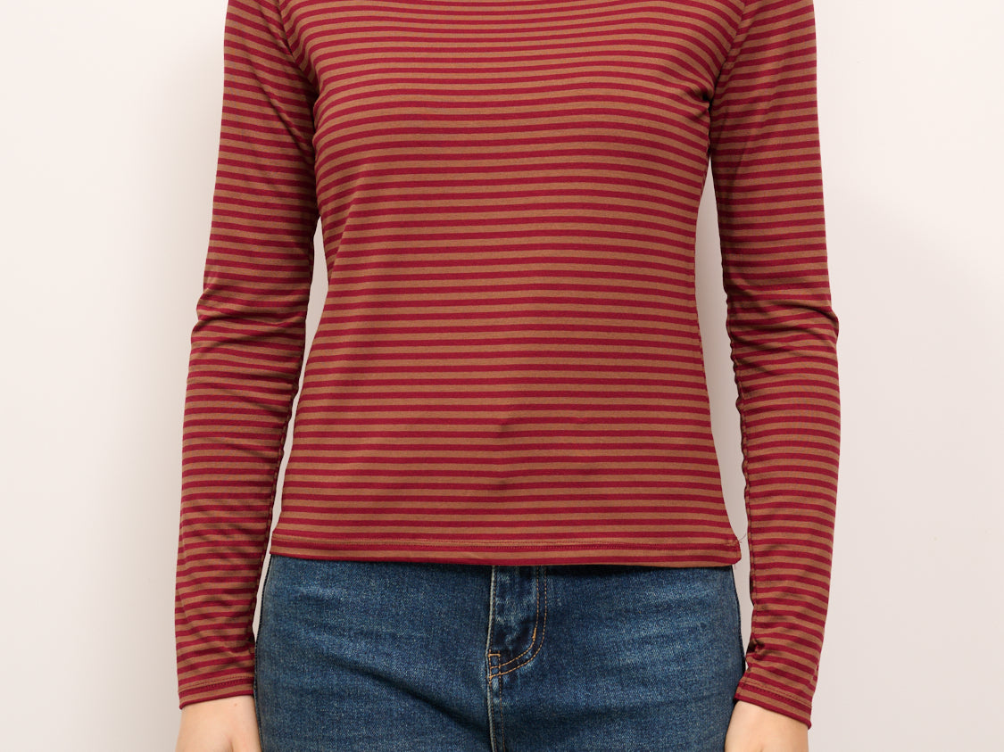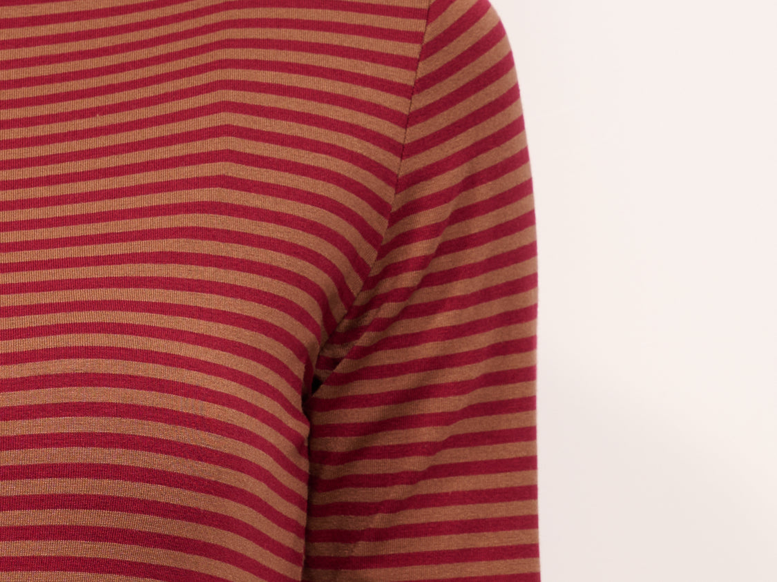 IDENTITY - MAGLIA SCOLLO BARCA RIGATA - TABACCO/ROSSO