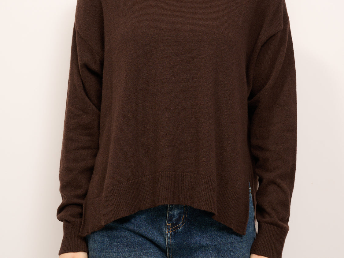 IDENTITY - MAGLIA GIROCOLLO SPACCHI LATI - CAFFE