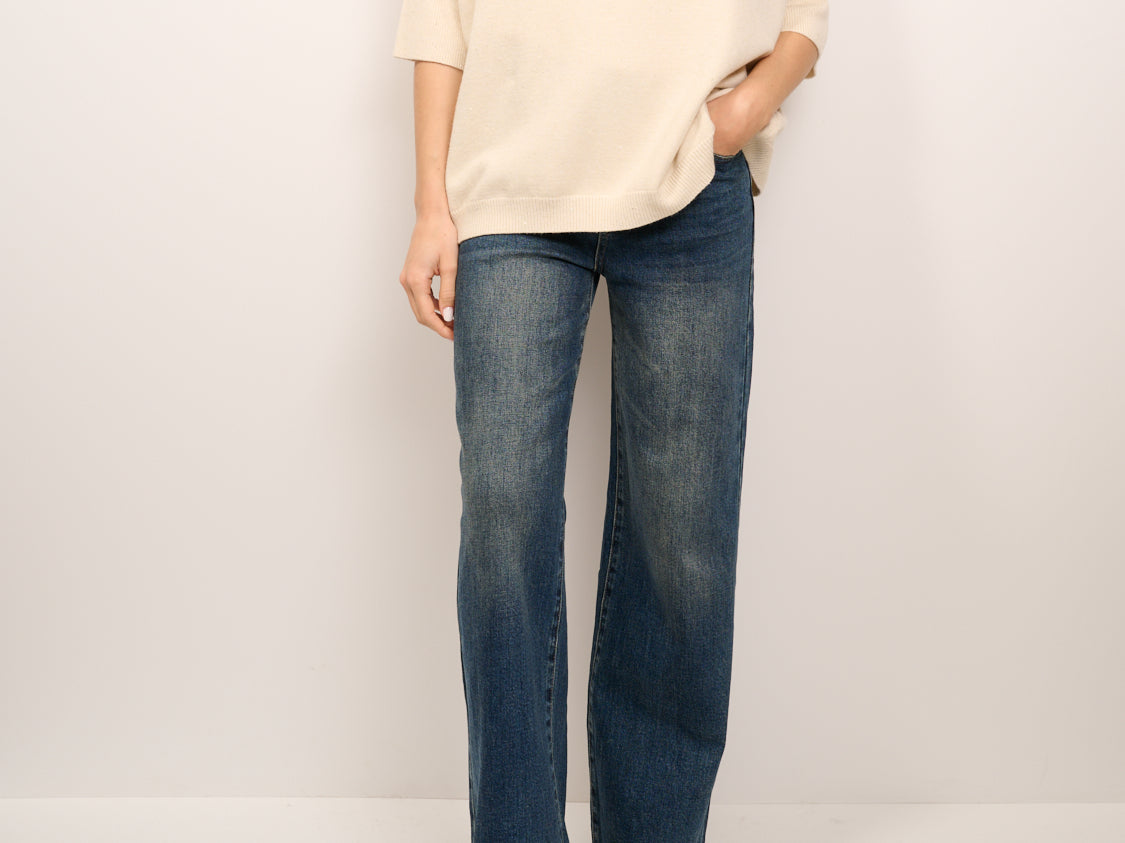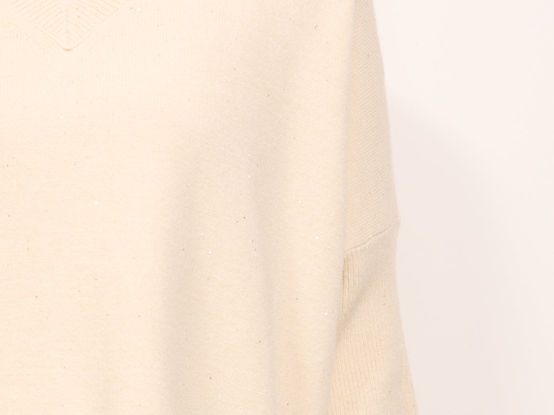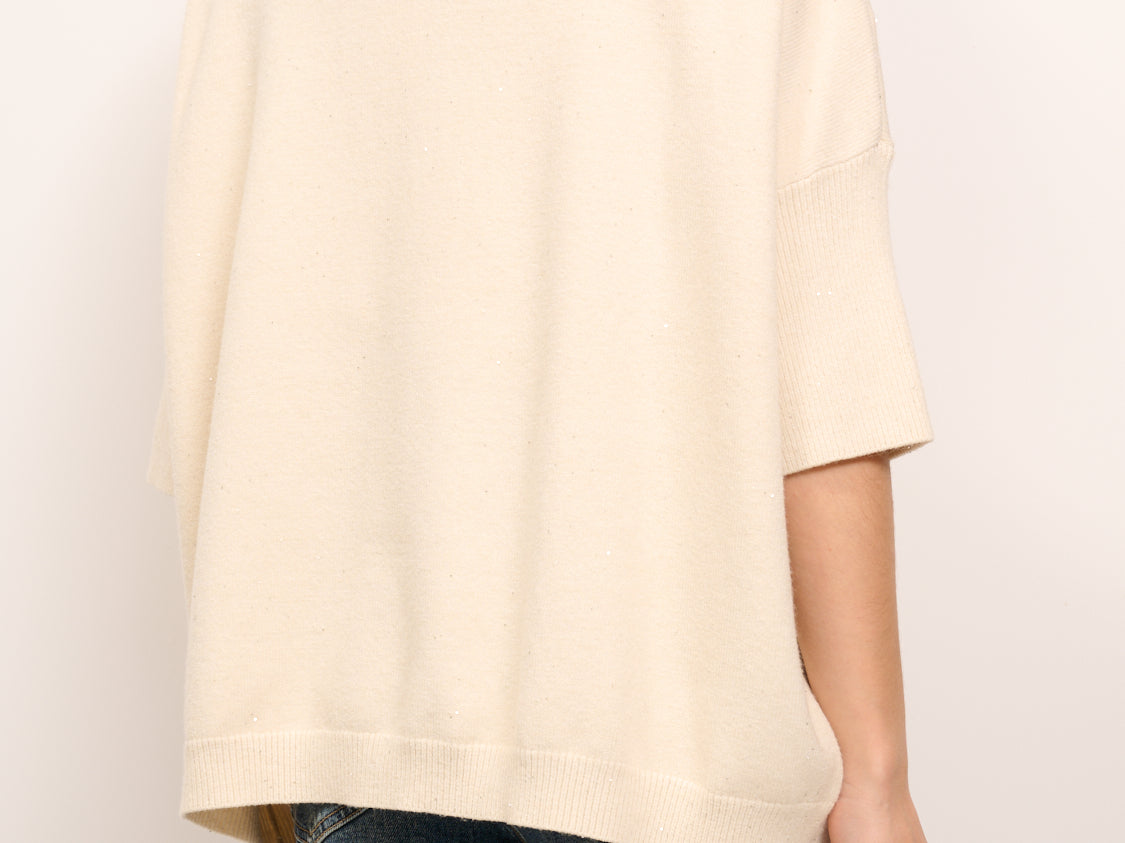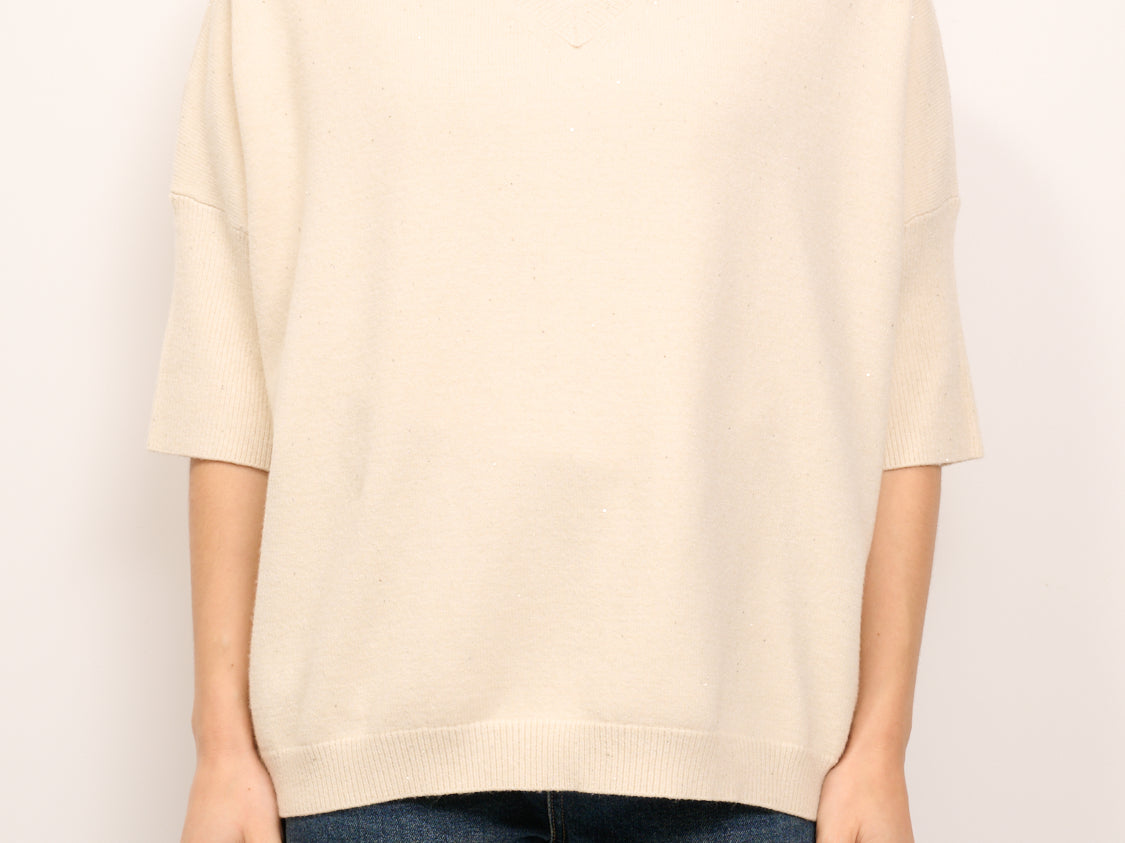 IDENTITY - MAGLIA OVER SCOLLO V MEZZA MANICA - PERLA
