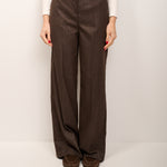 TENSIONE IN - PANTALONE LARGOSPINATO GESSATO - MORO