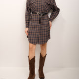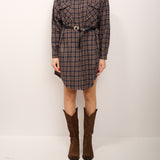 TENSIONE IN - ABITO QUADRO CON CINTURA - BLU
