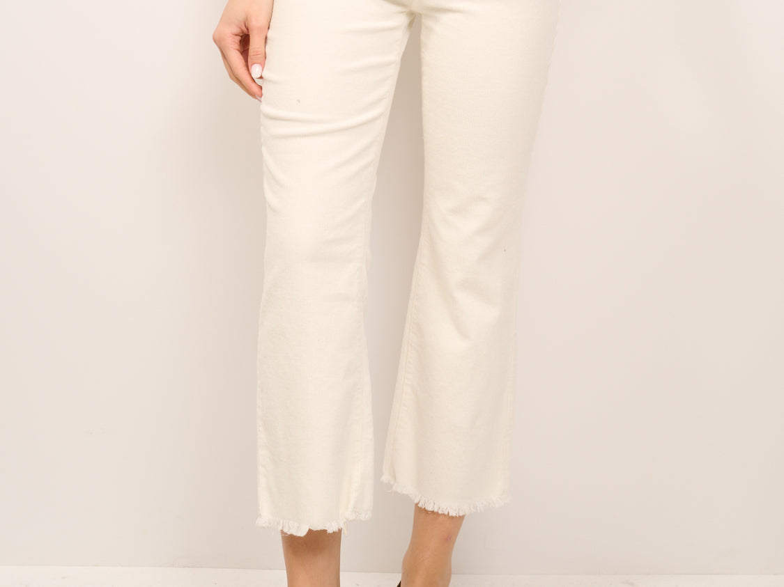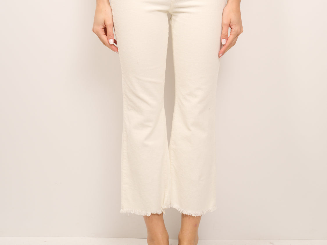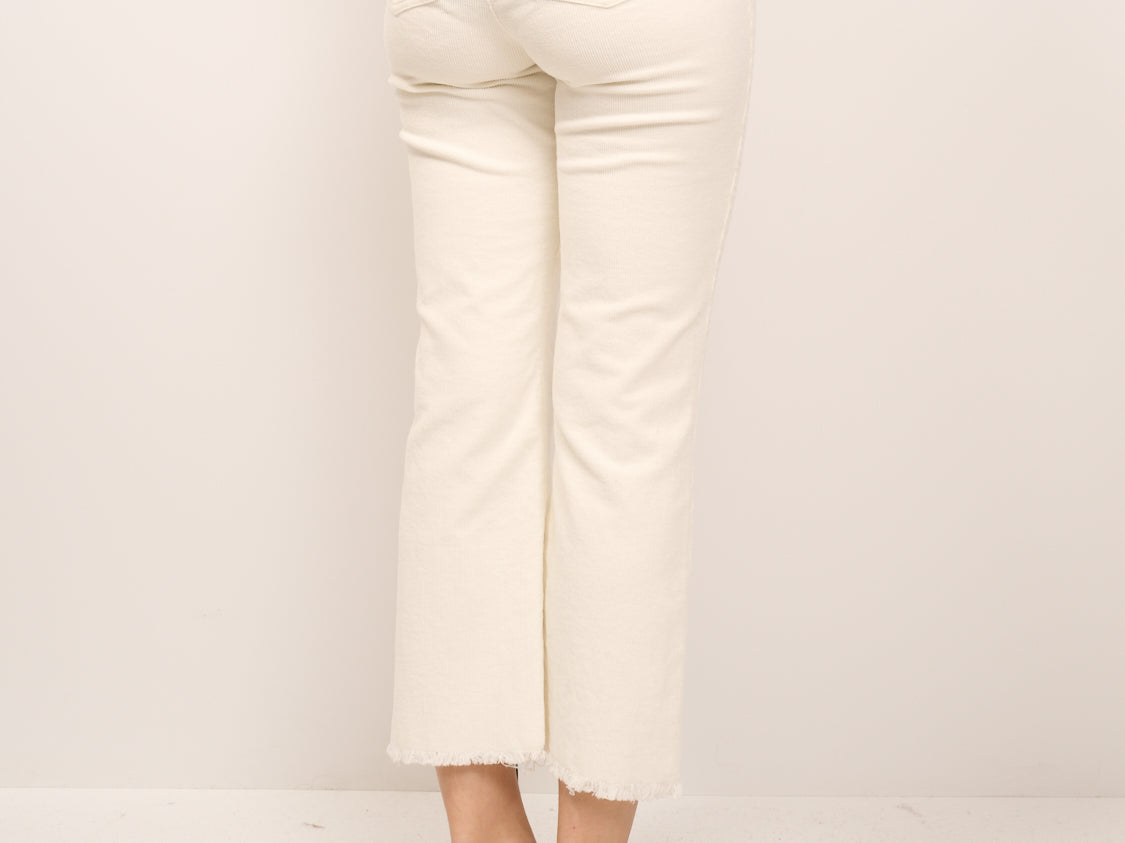 TENSIONE IN -PANTALONE TROMBETTA SFRANGIATO VELLUT - PANNA