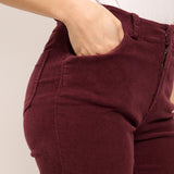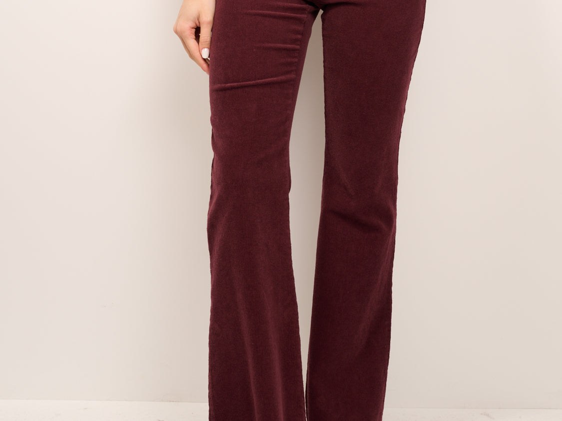 TENSIONE IN - PANTALONE ZAMPA SFRANGIATO VELLUTO - BORDEAUX