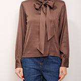 TENSIONE IN - CAMICIA FIOCCO SATIN - MOKA