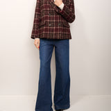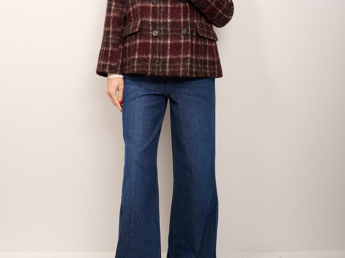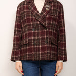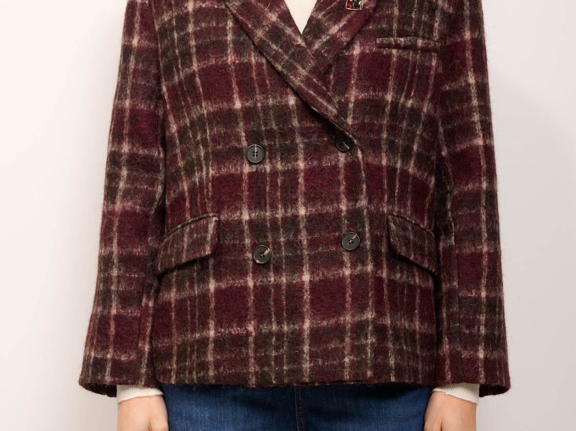 TENSIONE IN - GIACCA OVER CROP DOPPIO PETTO QUADRI - BORDEAUX/MORO
