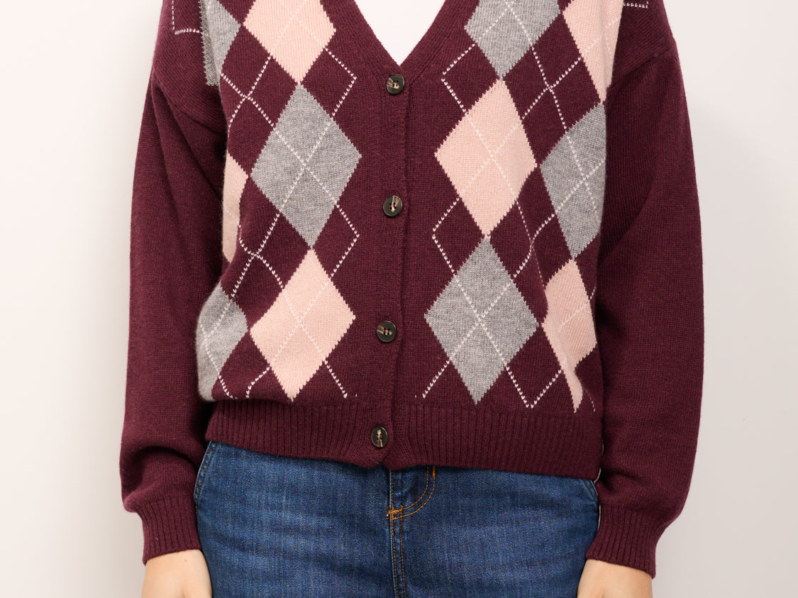 TENSIONE IN - MAGLIA BOTTONI ROMBI - BORDEAUX