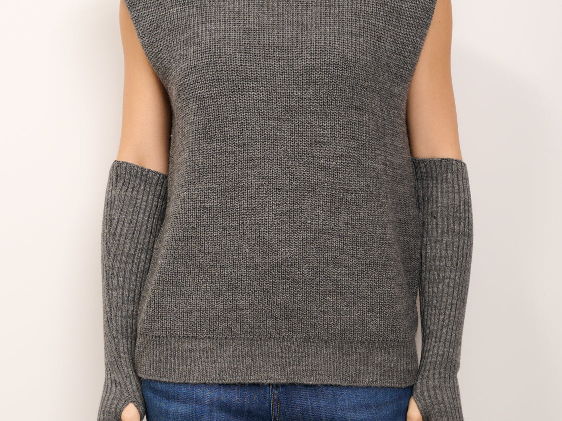 VICOLO - MAGLIA SENZA MANICA CON MANICOTTI - GRIGIO