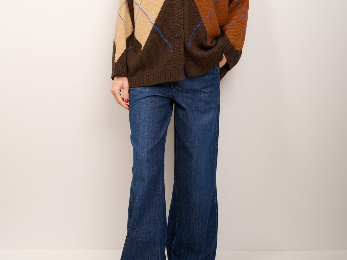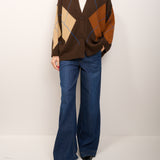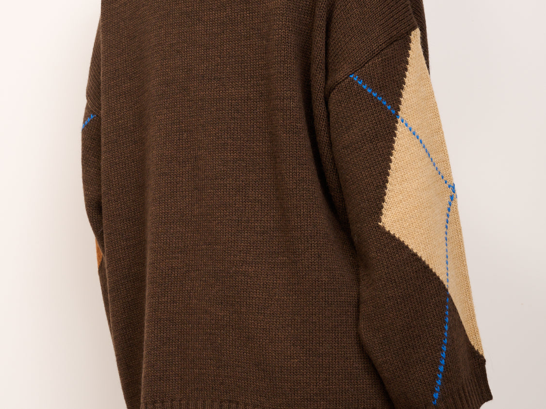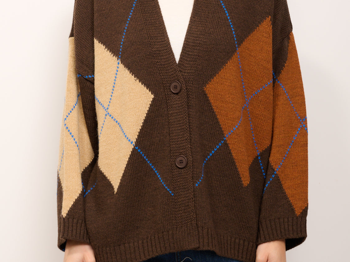 HAVE ONE - MAGLIA CARDIGAN ROMBI - MORO/BRUCIATO/CAMMELLO