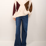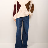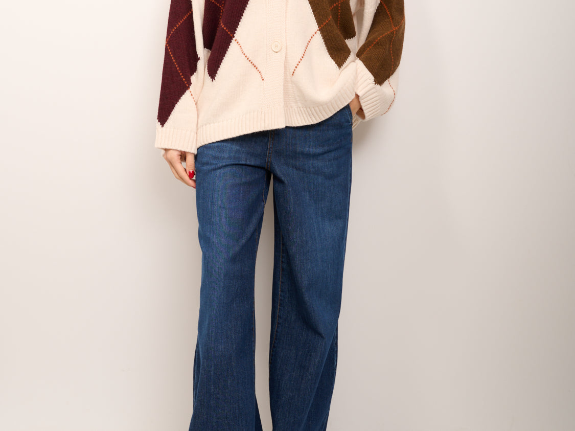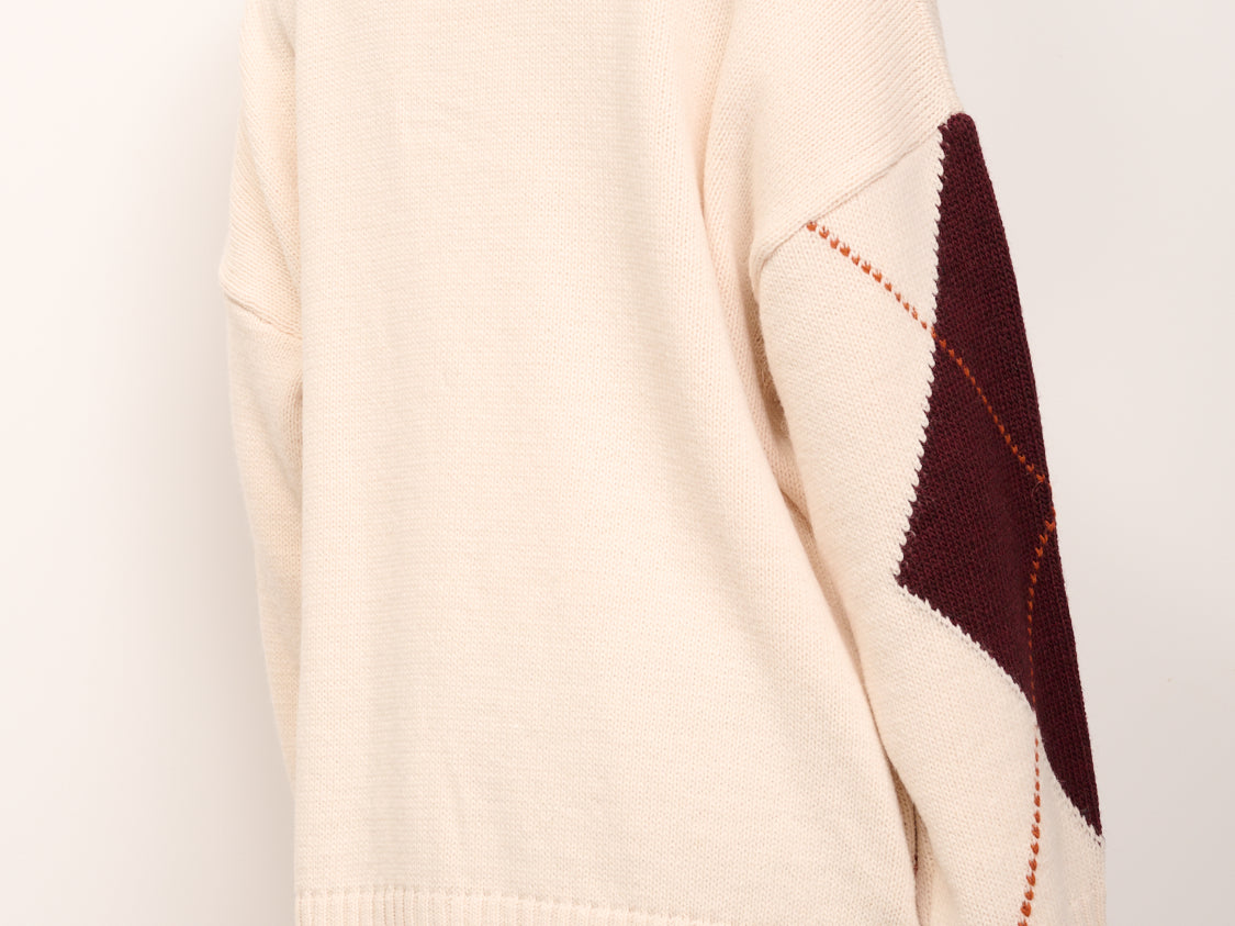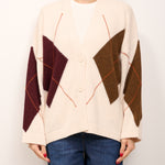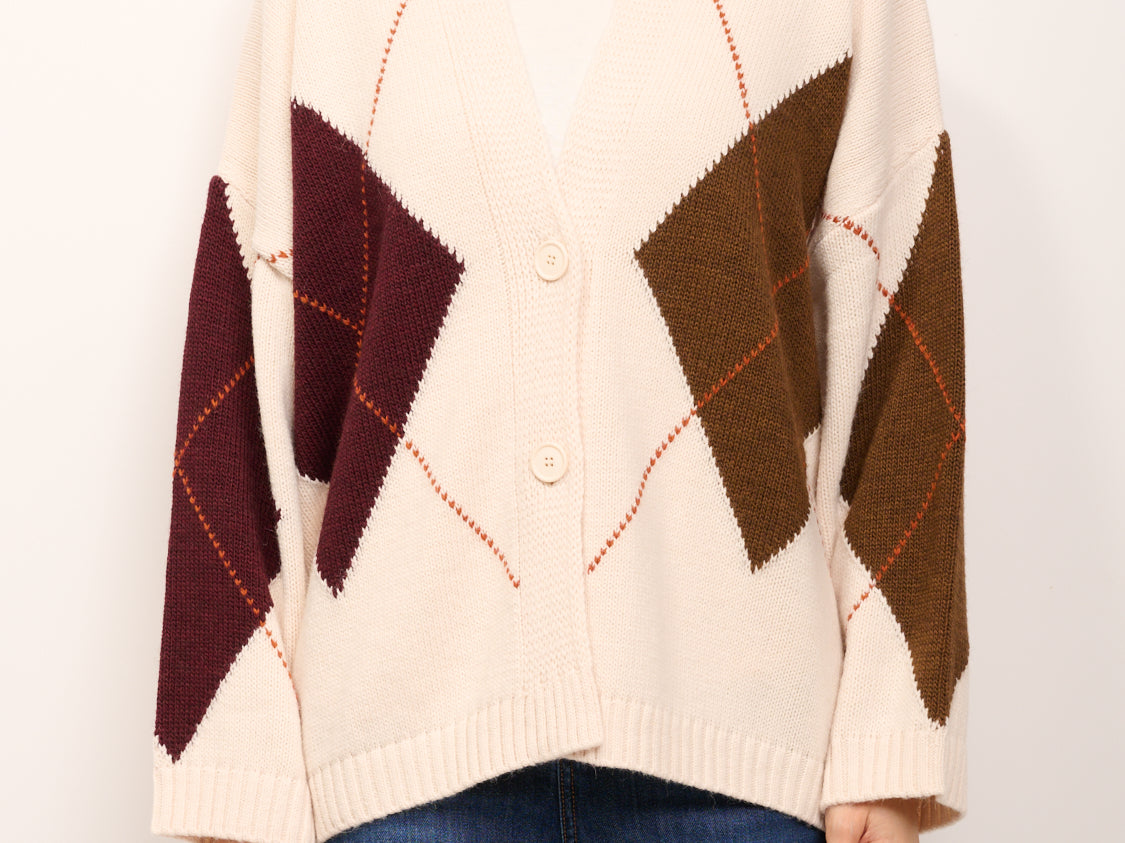 HAVE ONE - MAGLIA CARDIGAN ROMBI - PASTA/VINO/MOKA