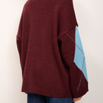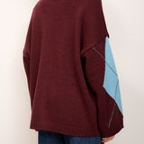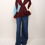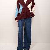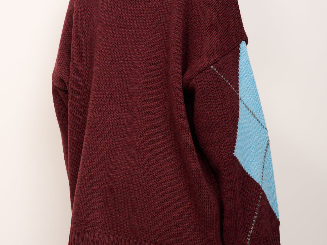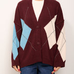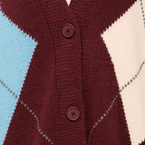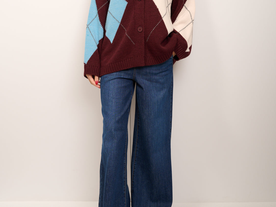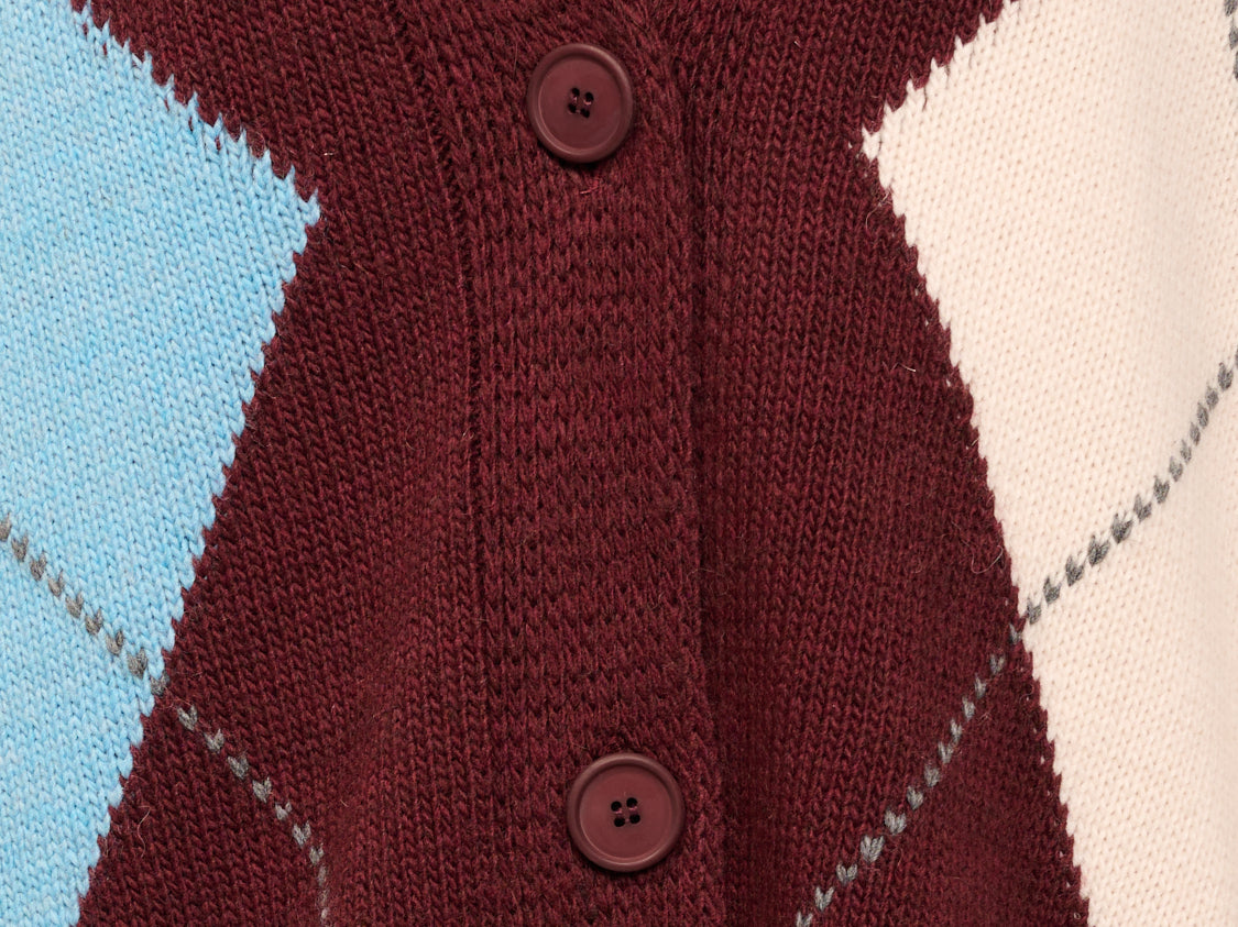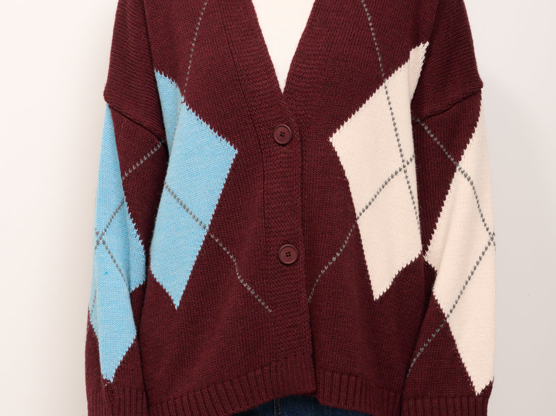 HAVE ONE - MAGLIA CARDIGAN ROMBI - VINO/AZZURRO/PASTA