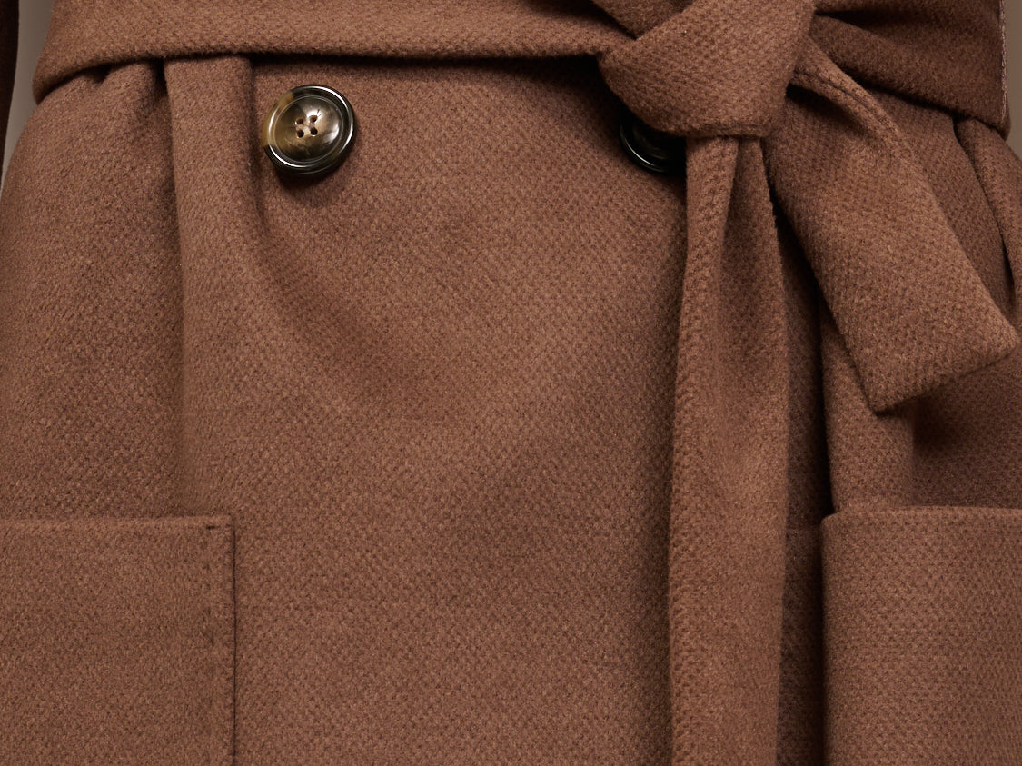 TENSIONE IN - CAPPOTTO CON CAPPUCCIO E CINTA - MORO
