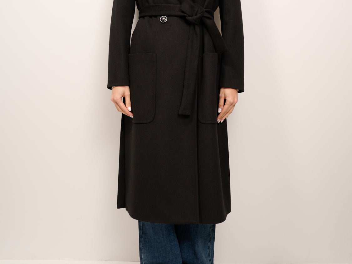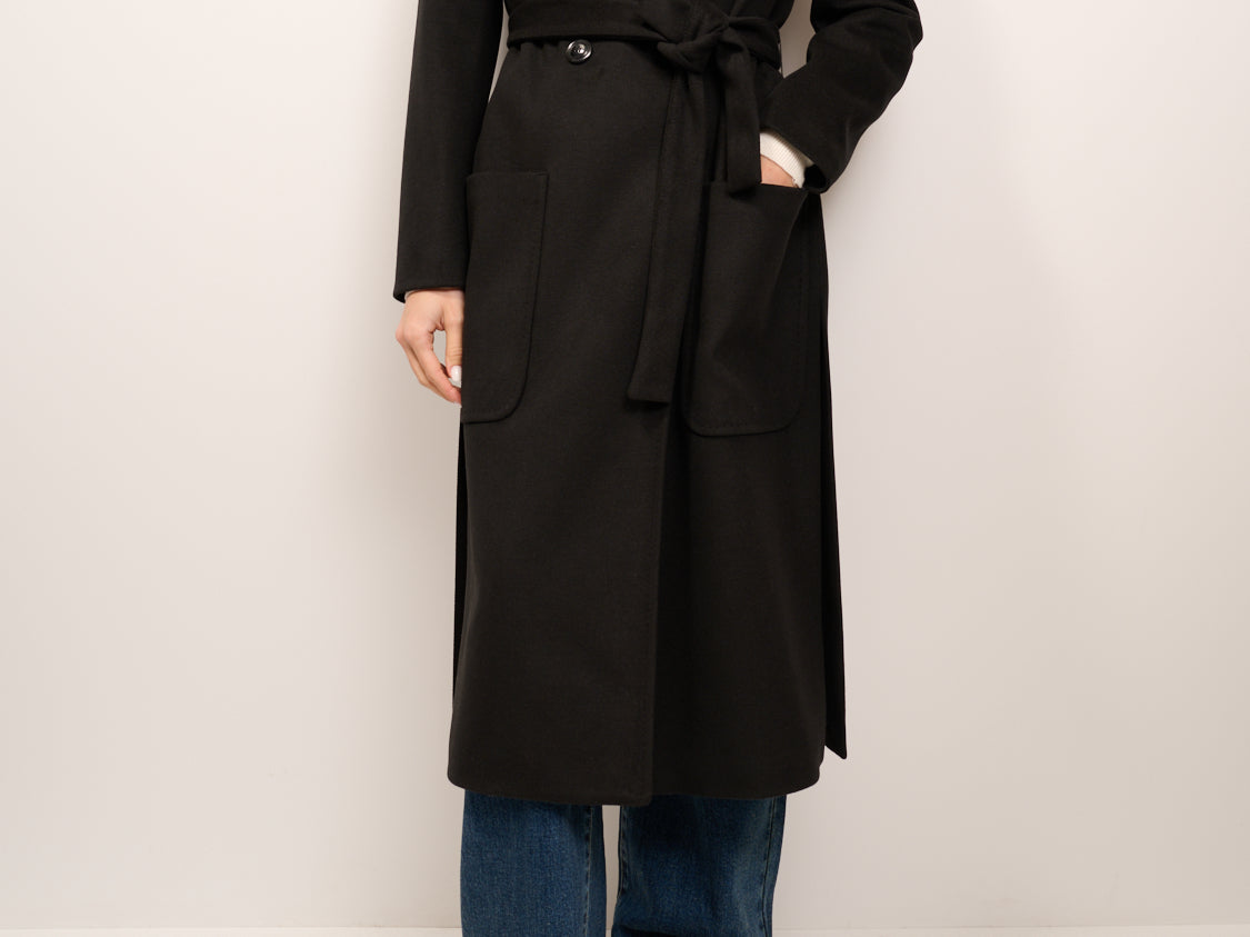 TENSIONE IN - CAPPOTTO CON CAPPUCCIO E CINTA - NERO
